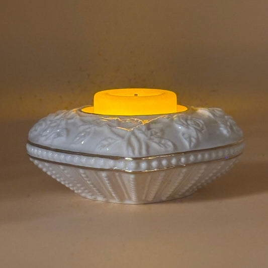 1980s Lenox Porcelain Ivory Heart Votive Candle Holder