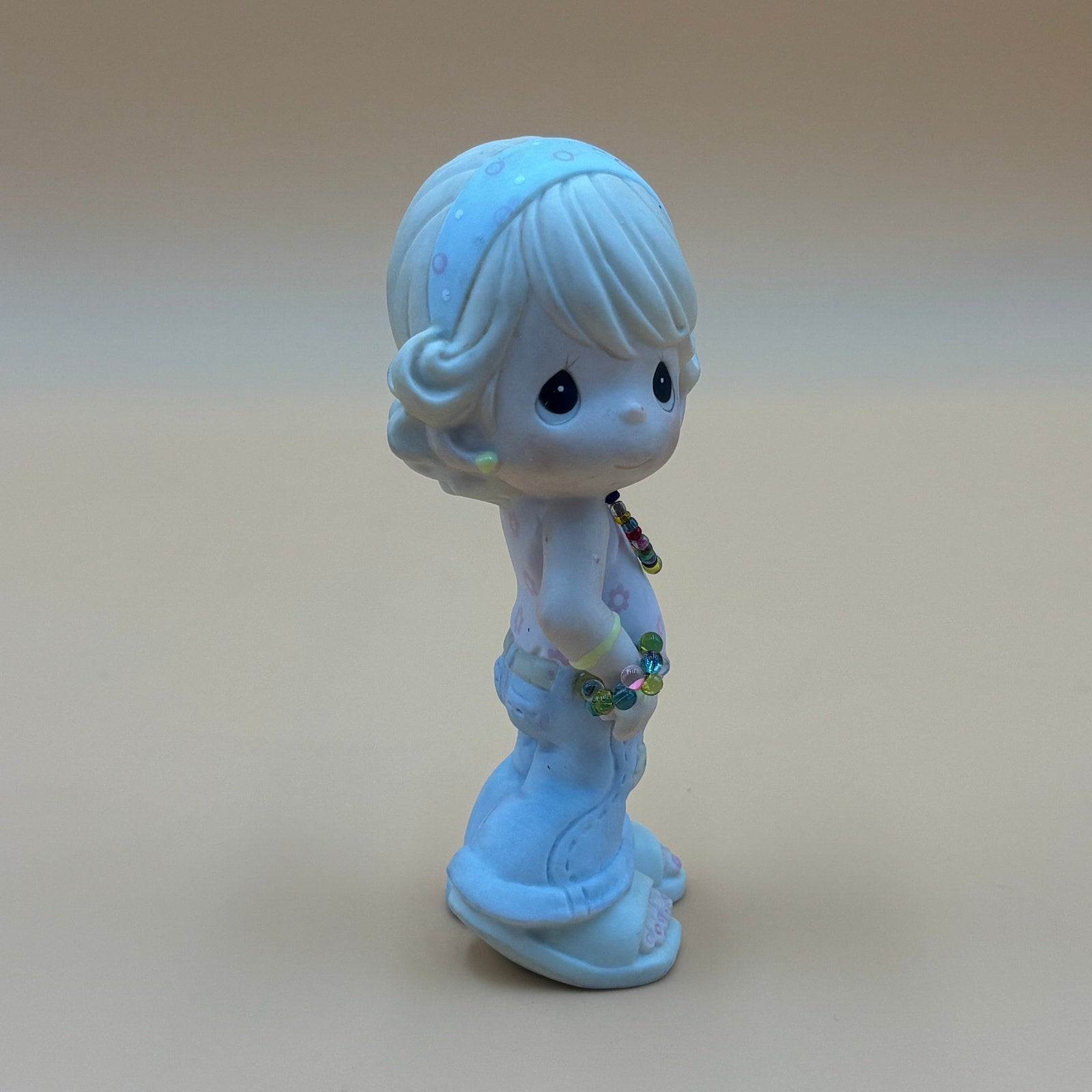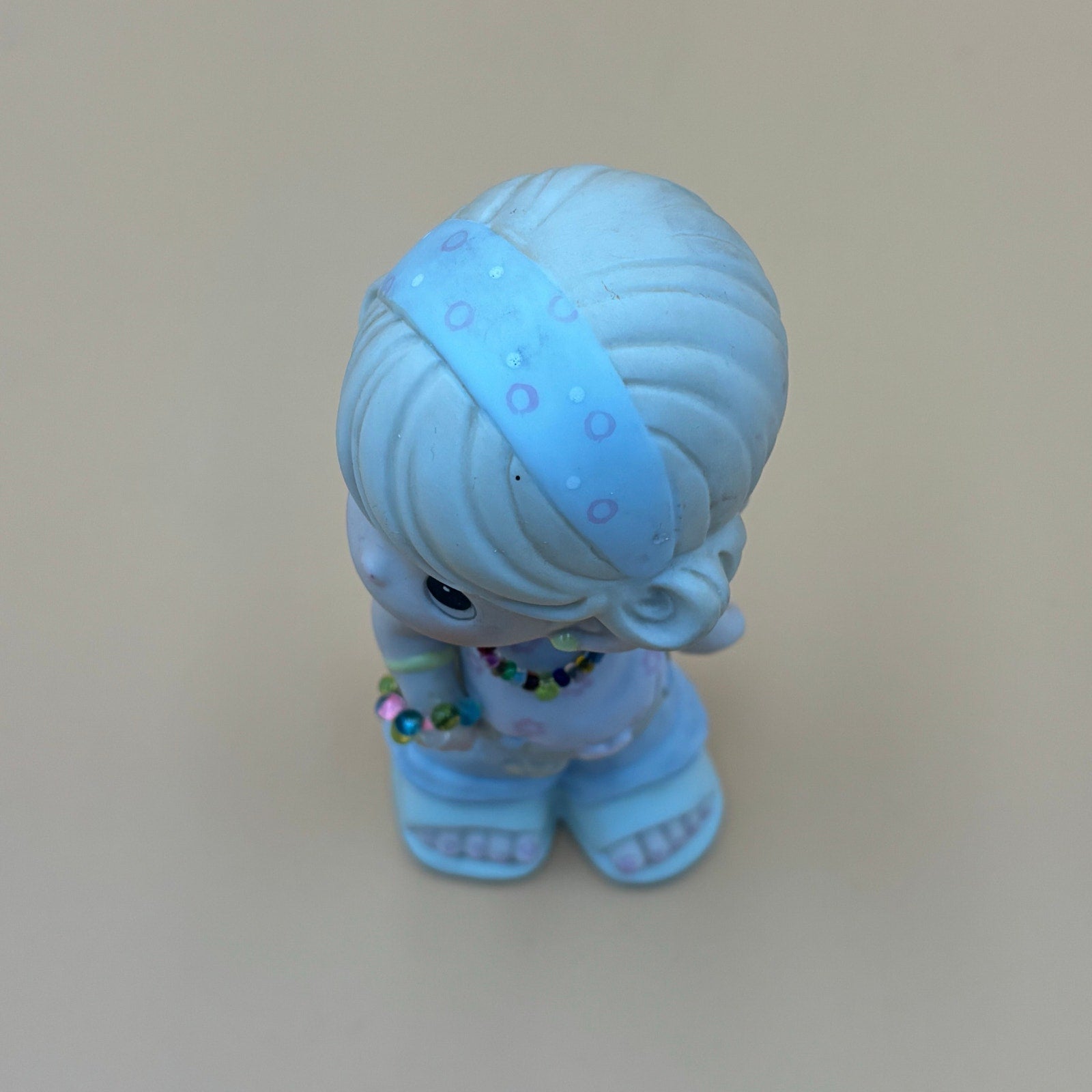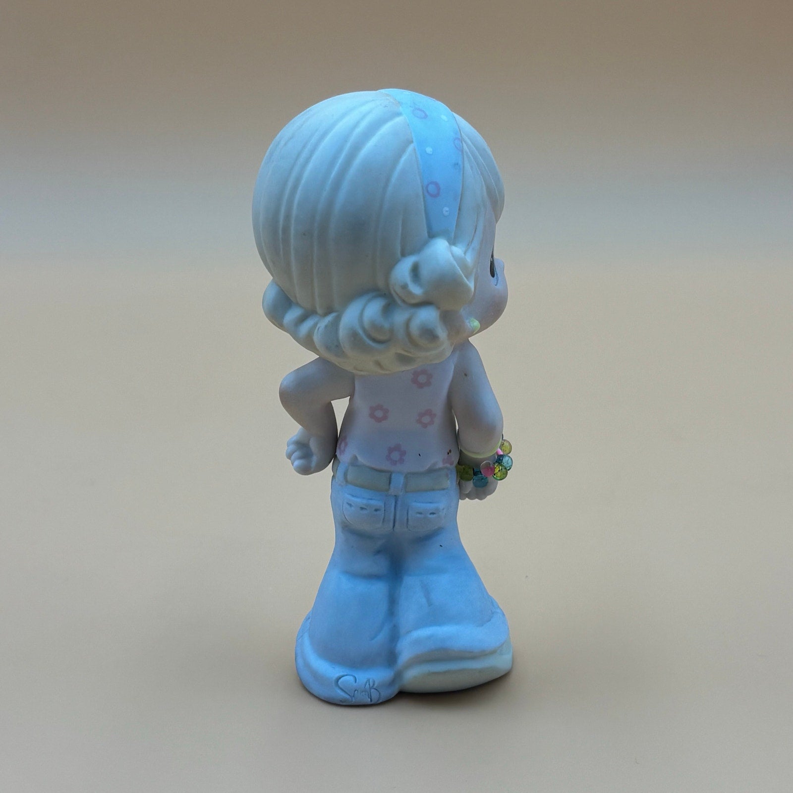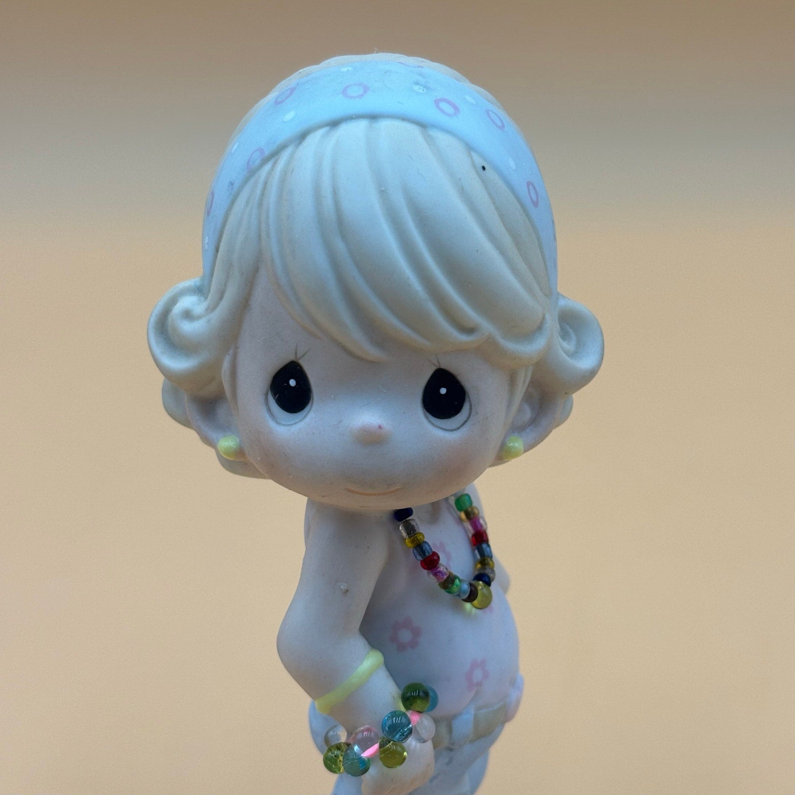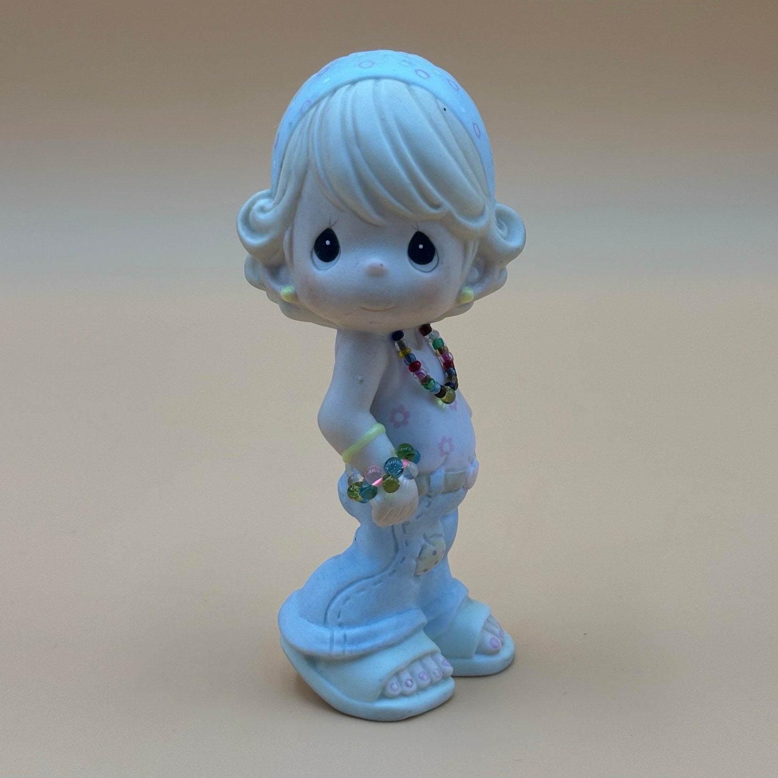Official 2004 Precious Moments figurine titled “I Am Me” (Item #120118), featuring a stylish girl with beaded jewelry, flip flops, patched jeans, and a blue headscarf. Part of the Precious Moments “Caring & Sharing” collection, licensed by Enesco and made in Indonesia. Bottom stamped with original markings.