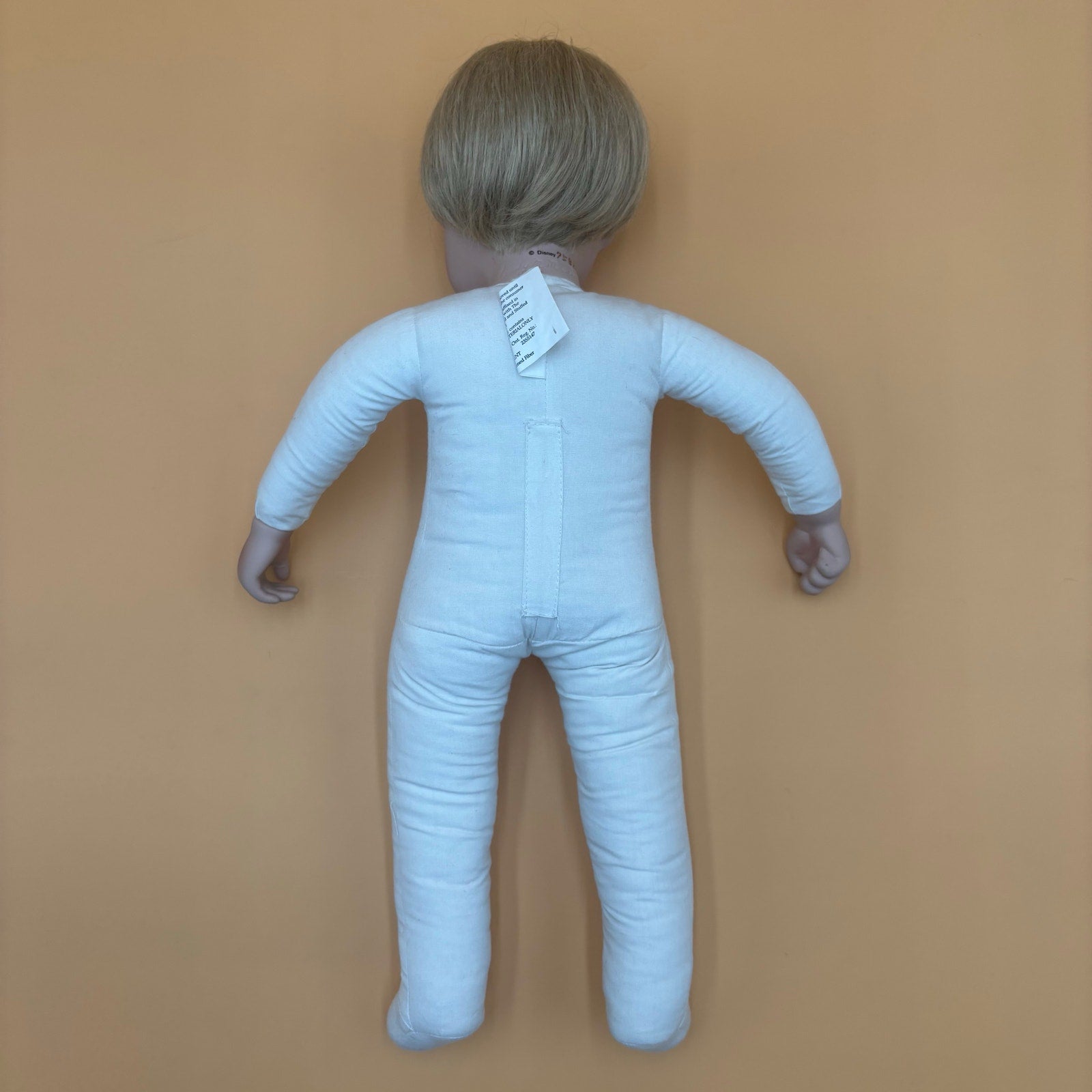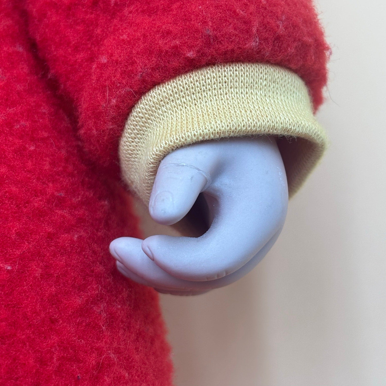 Collectible Ashton Drake porcelain and cloth doll featuring Winnie the Pooh character in red fleece sleeper with matching hat. Part of "It's So Much Friendlier Than Pooh" collection. Selling as found, no additional cleaning. His thumb looks like it was repaired.