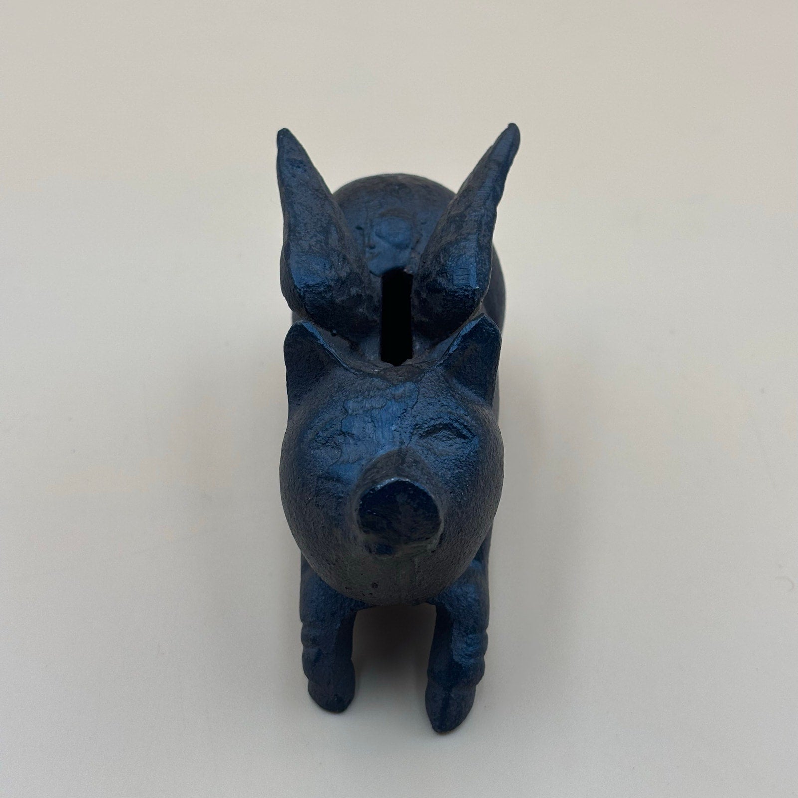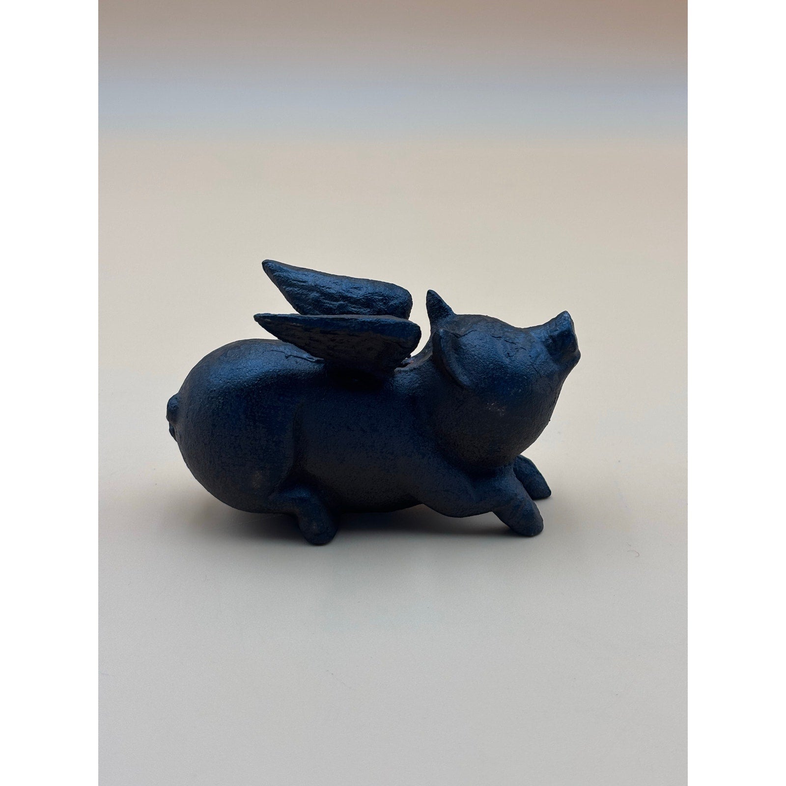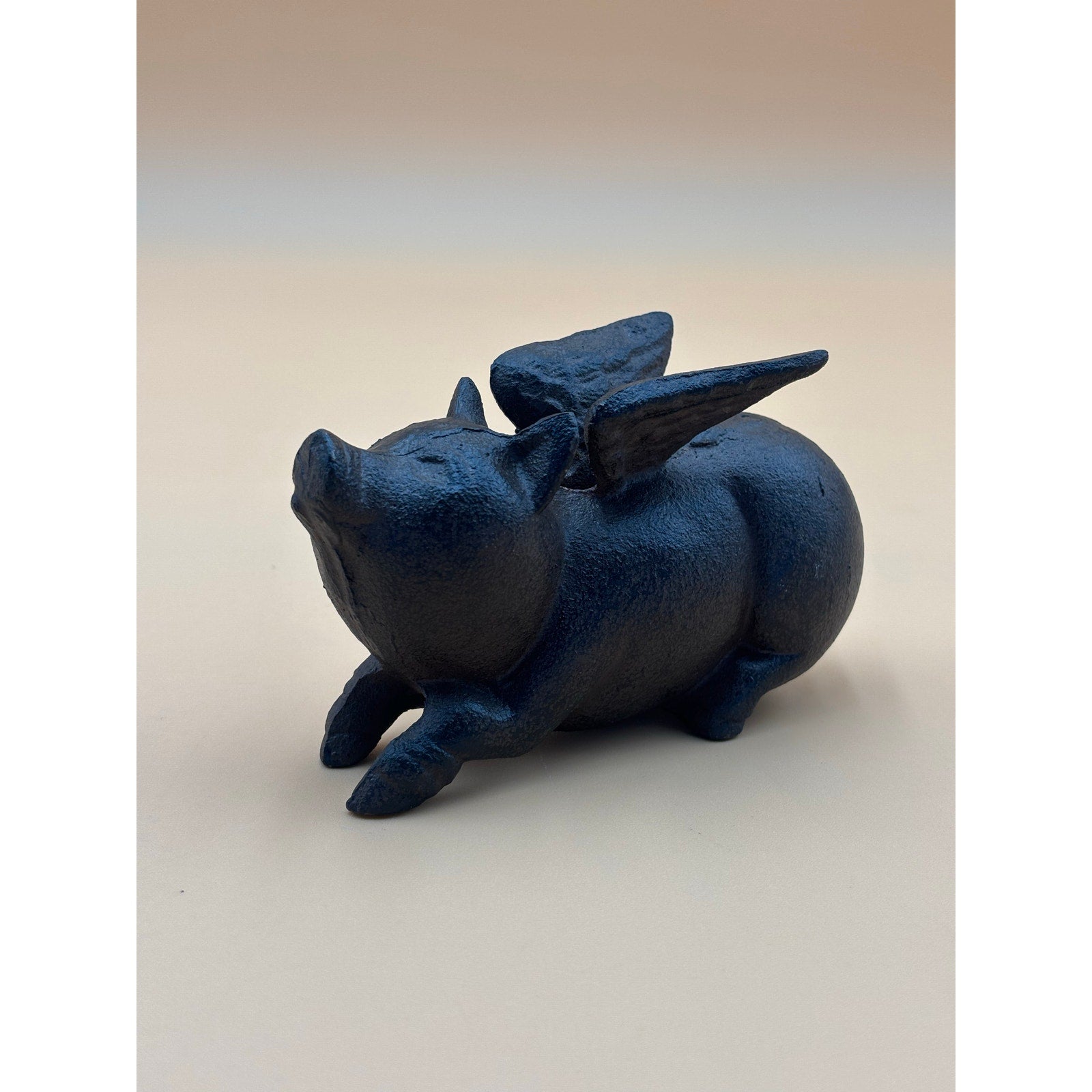 Solid cast iron flying pig coin bank featuring a coin slot on top and a sealed base. Heavy and well-crafted with detailed wings and a classic design β a great collectible or farmhouse accent piece.