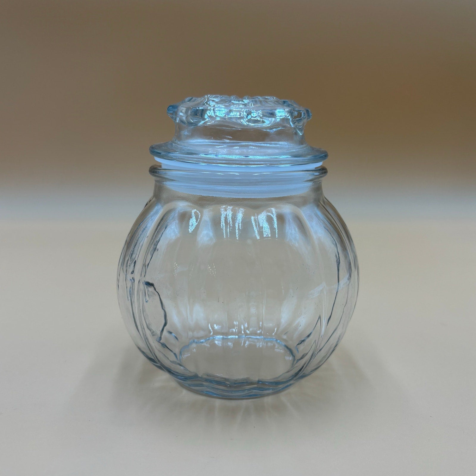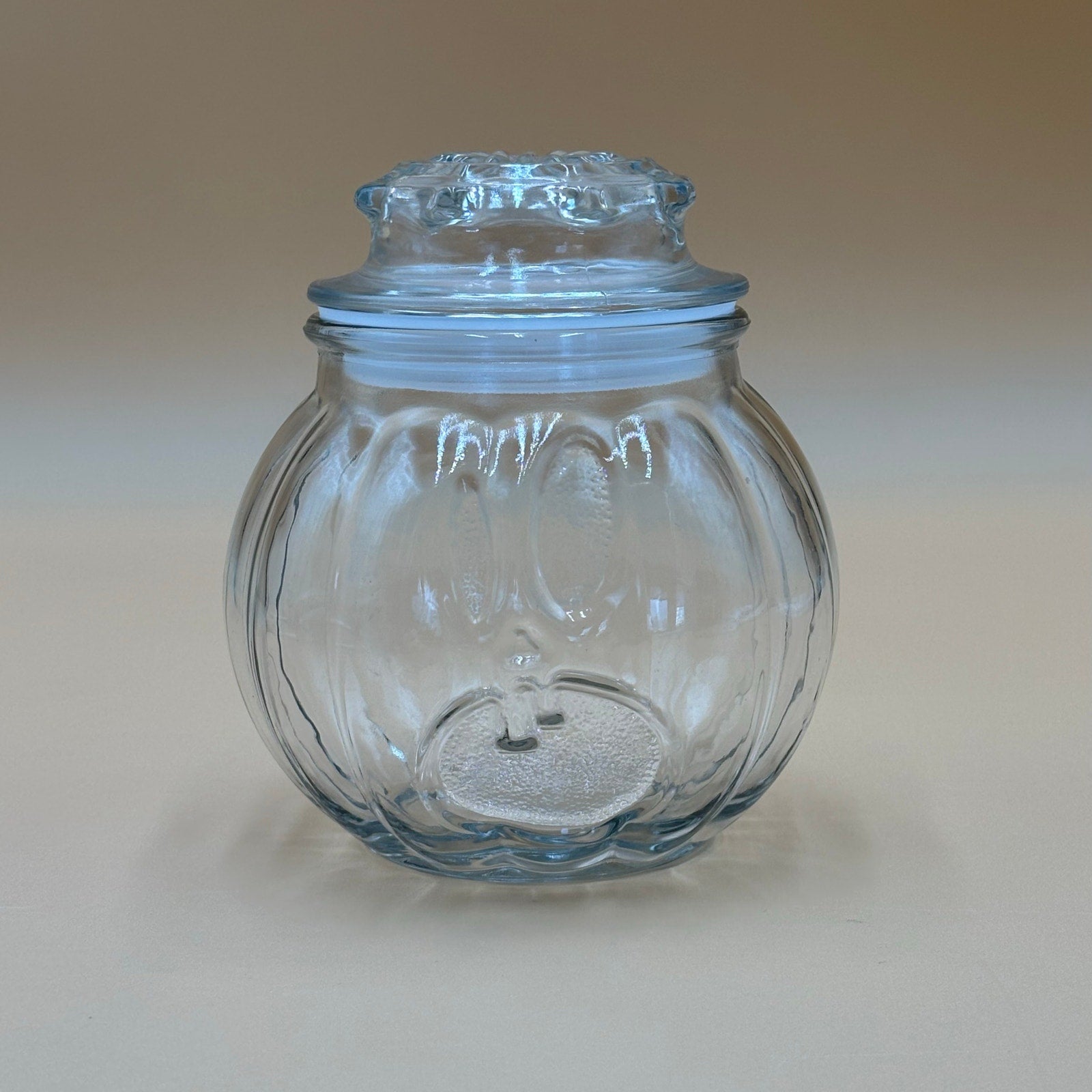 Clear Ribbed Glass Pumpkin Jar with Lid