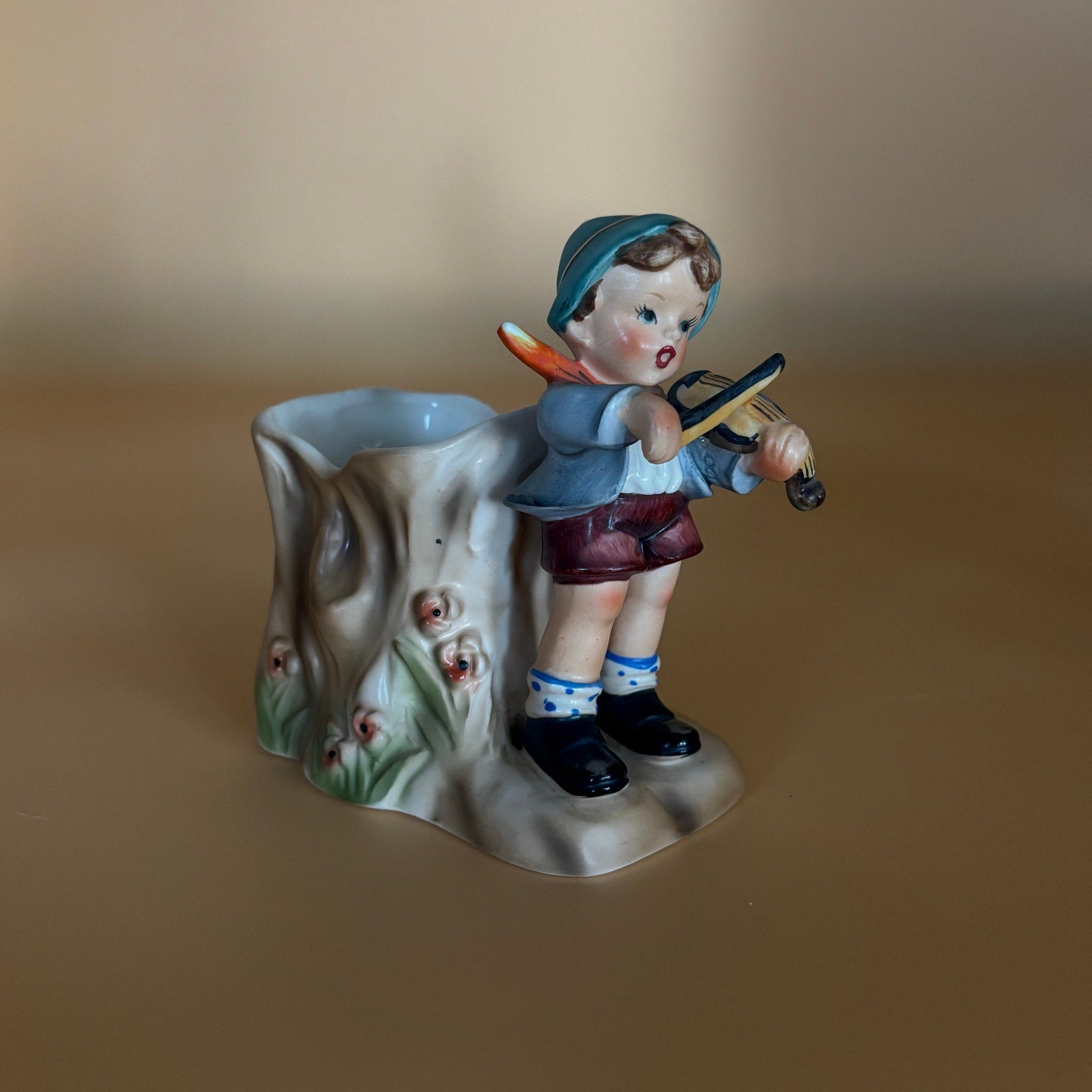 Enesco Figurine Vintage Planters β Boy with Violin & Girl with Basket β Set of 2