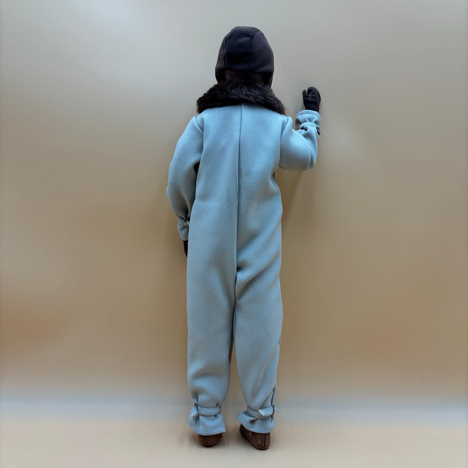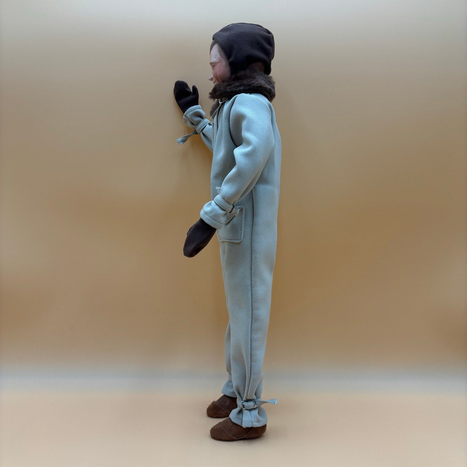 Authentic Faith Wick Charles Lindbergh doll featuring detailed porcelain head with hand-painted features. Dressed in flight suit with fur collar, mittens, and matching hood. This limited edition collectible captures the famous aviator in his historic trans-Atlantic flight gear. In great vintage condition. Stand not included.