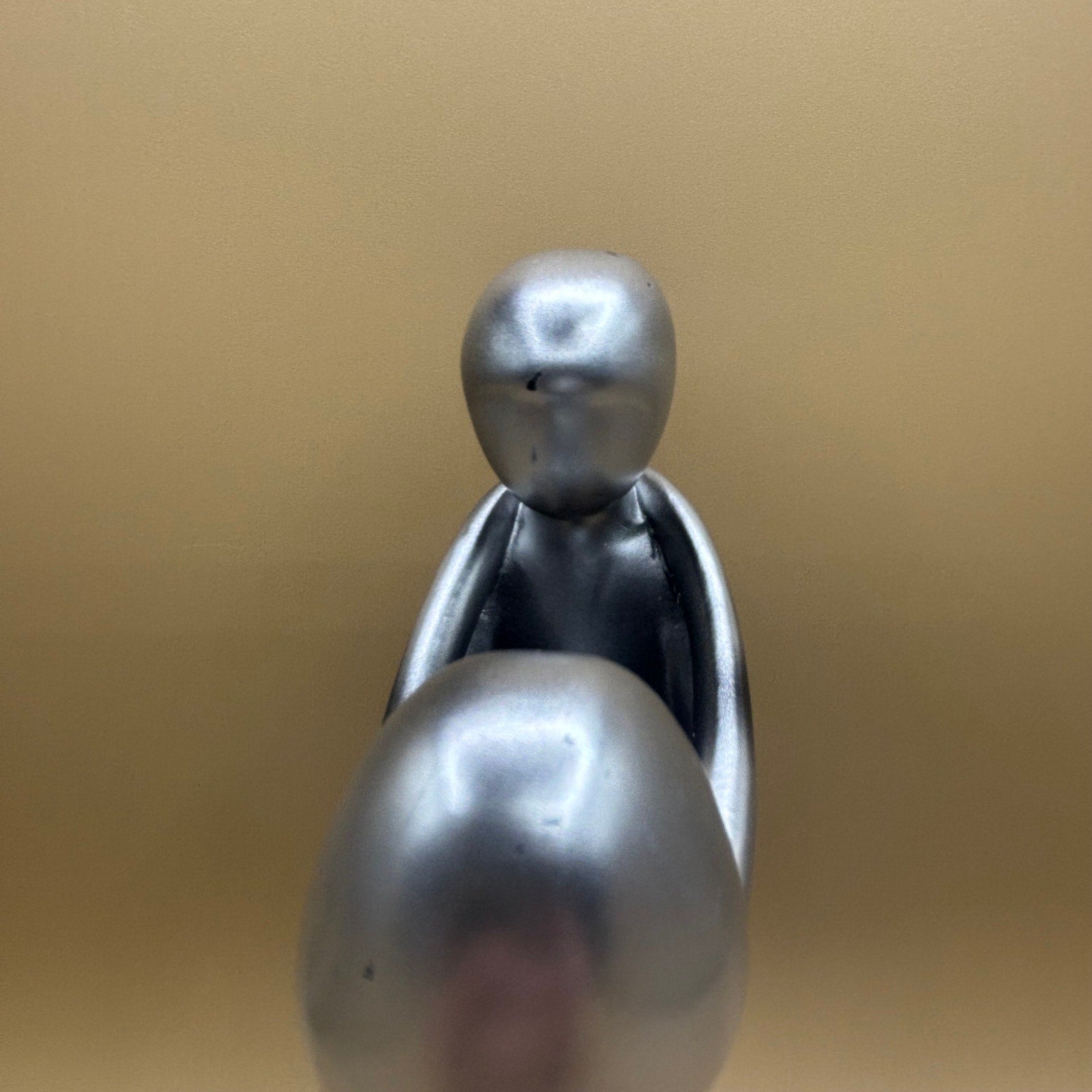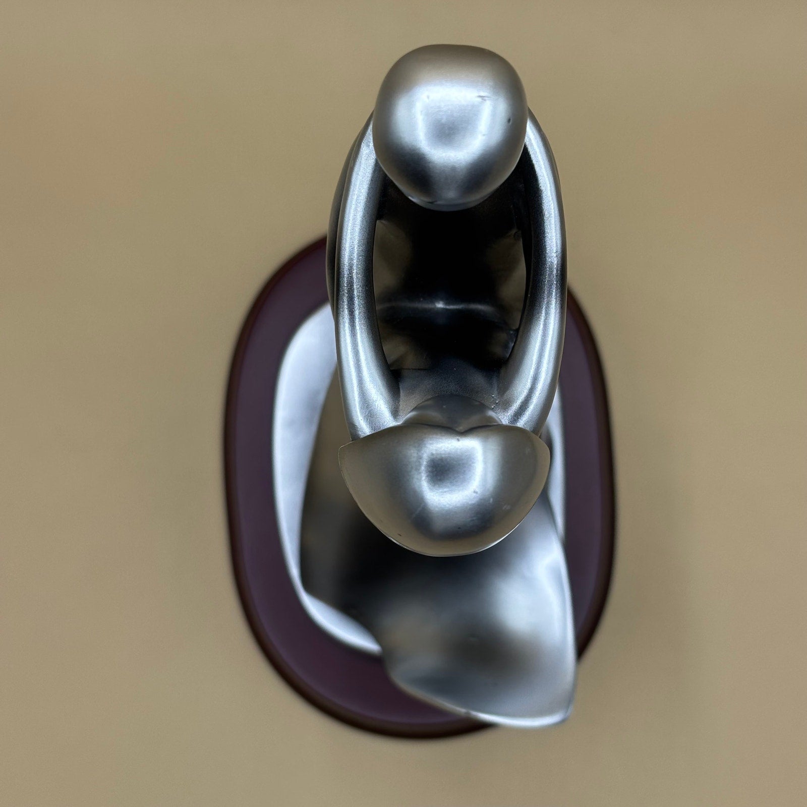This elegant Herco gift statue features a professional man and woman embracing in a passionate kiss. Made of high-quality silver-colored material with a wooden base, this modernist sculpture beautifully captures the essence of love and connection.