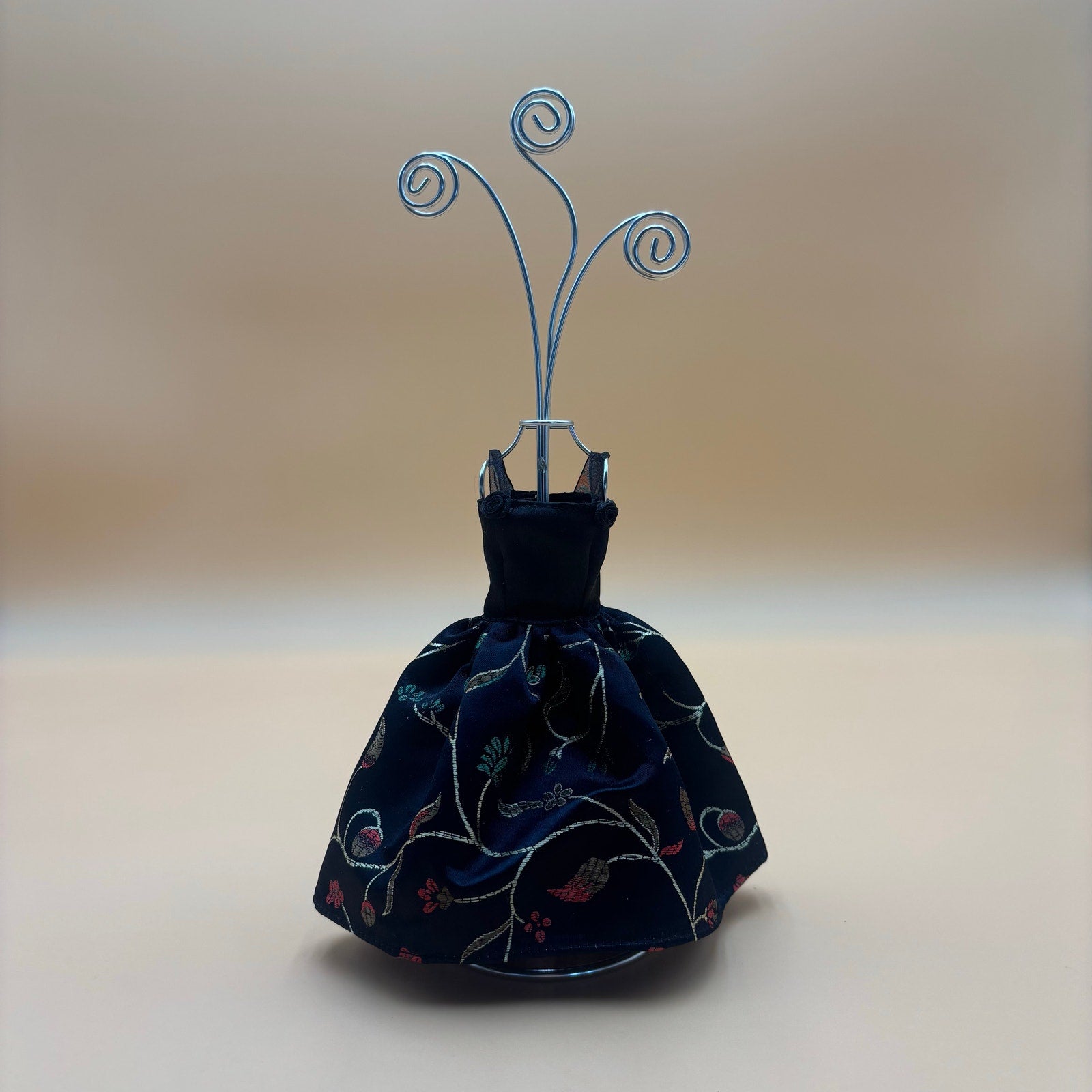 📦 Mini Dress Form Photo/Card Holder - Black Floral Embroidery