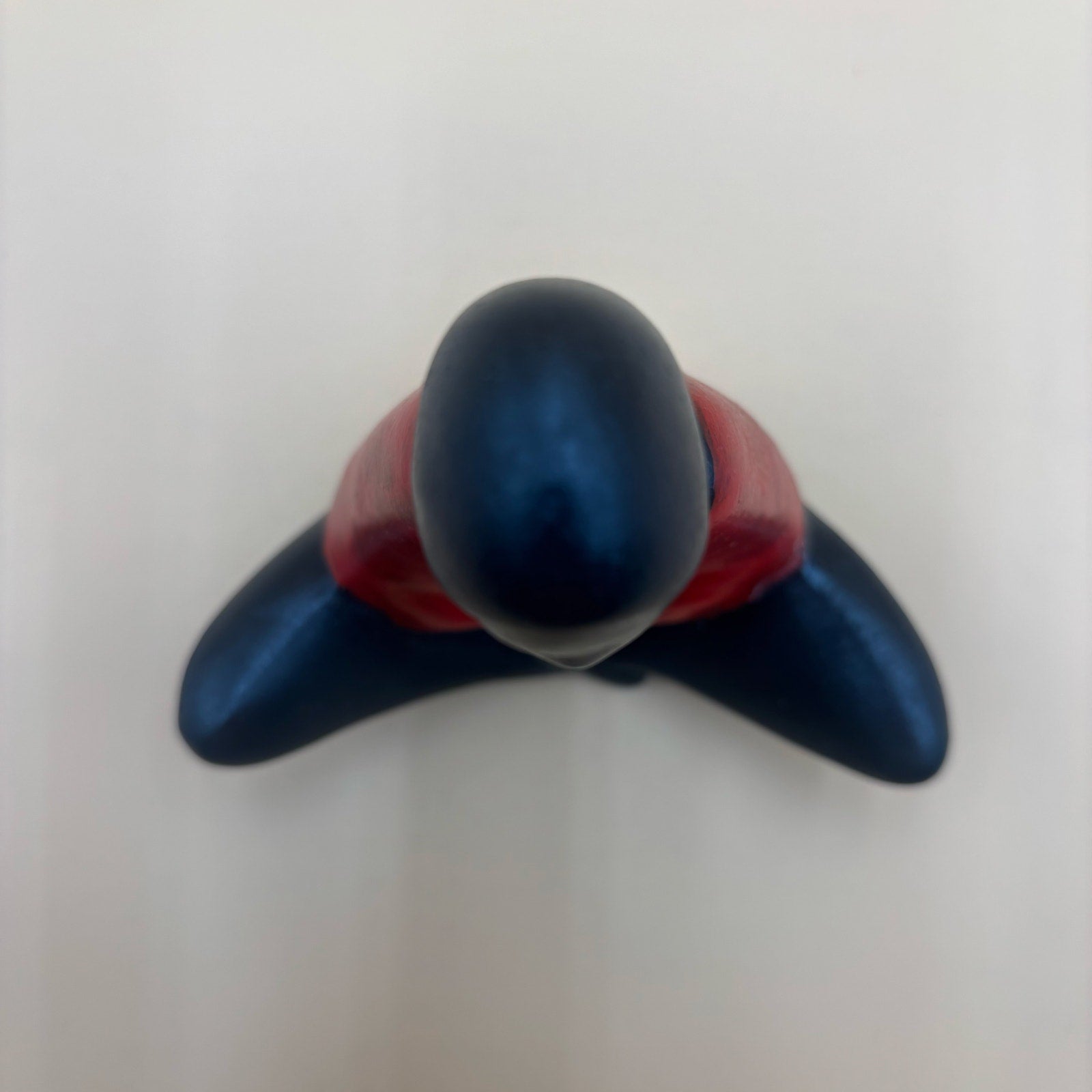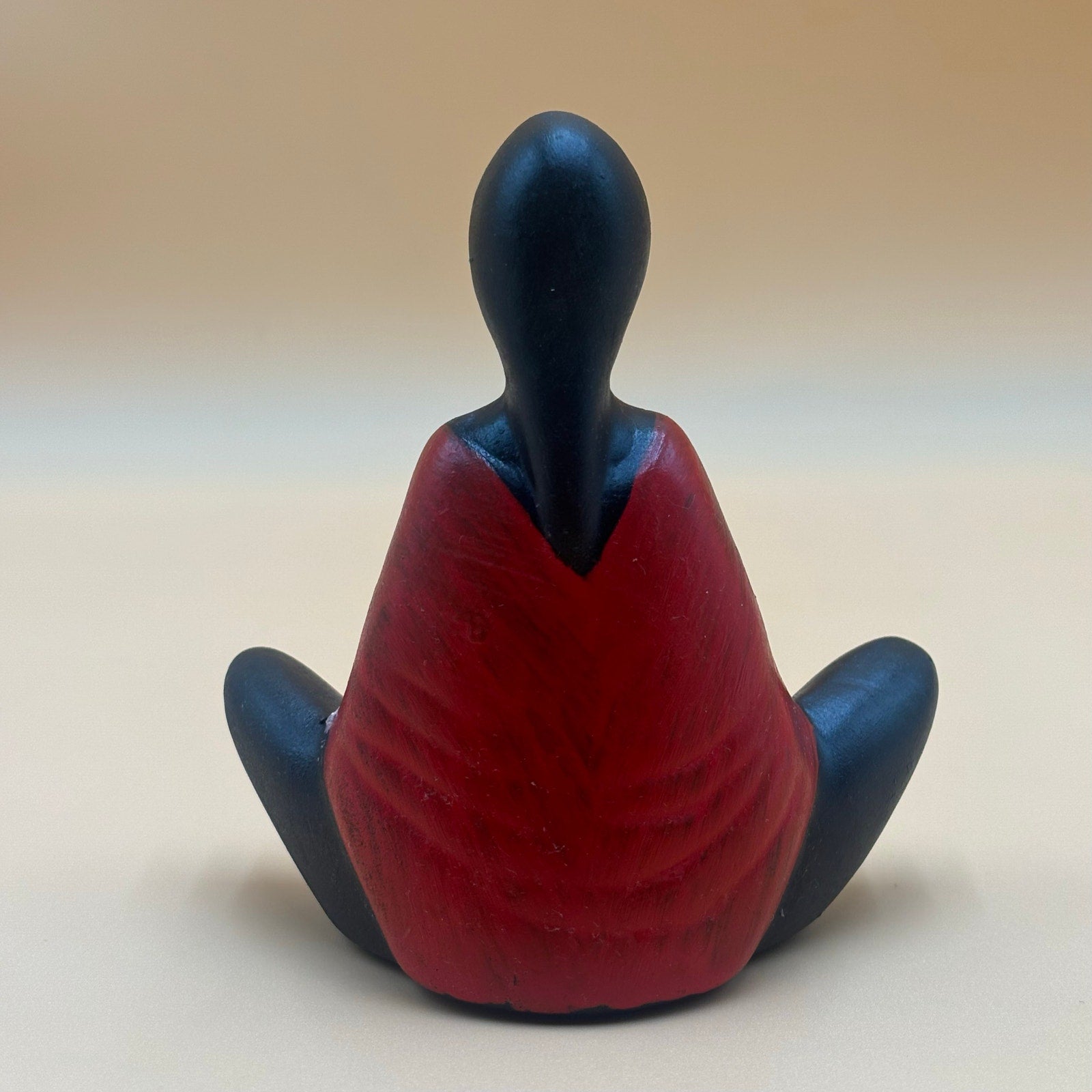 Striking ceramic figurine of a Native American woman in lotus meditation pose. Features a sleek modern design with black body and vibrant red wrap/poncho. Minimalist styling makes this a versatile decorative accent for contemporary or southwestern decor.