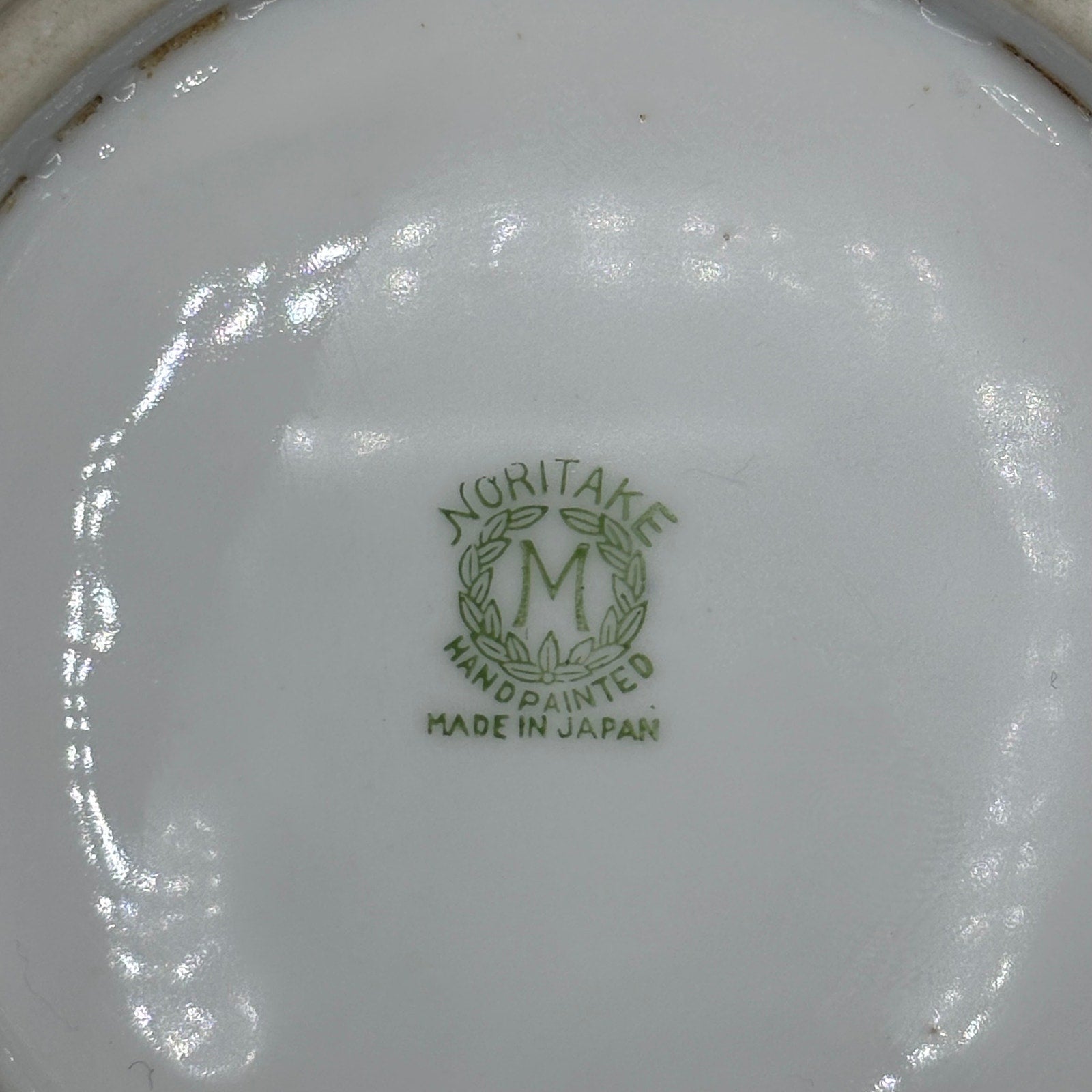 Noritake Green Wreath Yellow Pink Roses Black Gold Handled Bowl