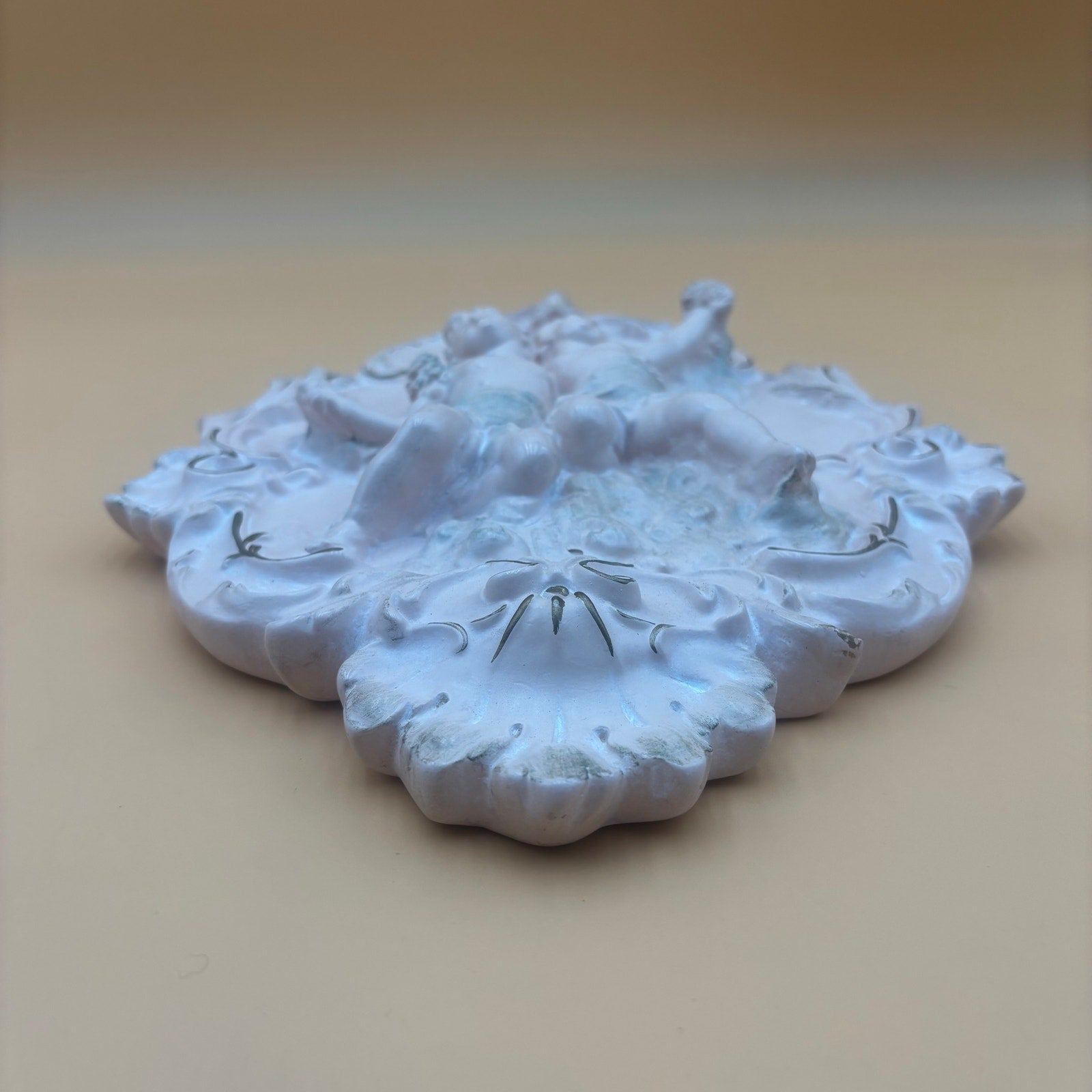 Good vintage condition. Light surface wear consistent with age. One cherub has a small mark on the cheek. Please check all photos and ask any questions before ordering.