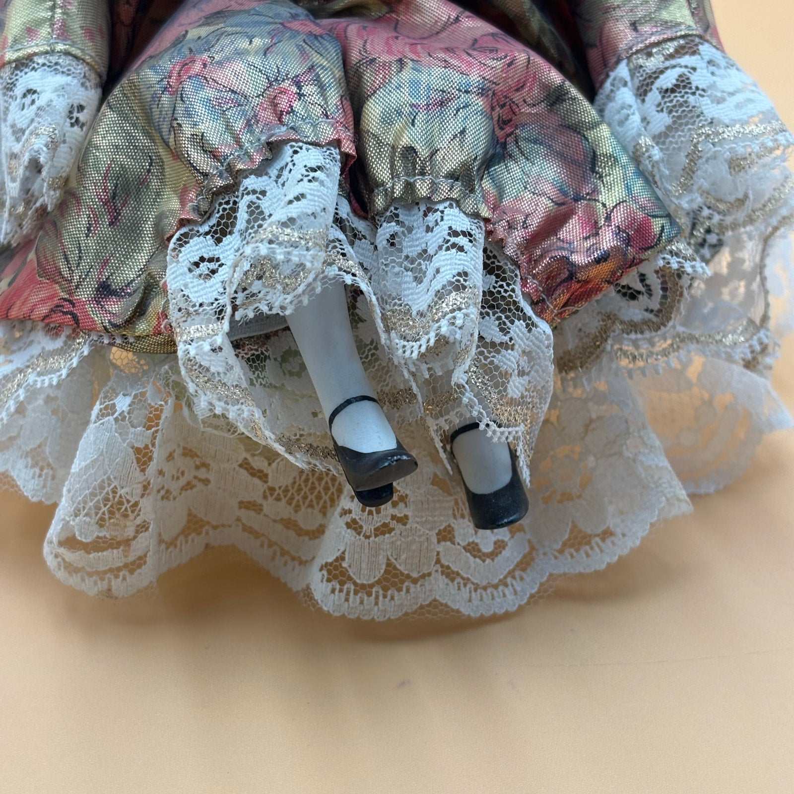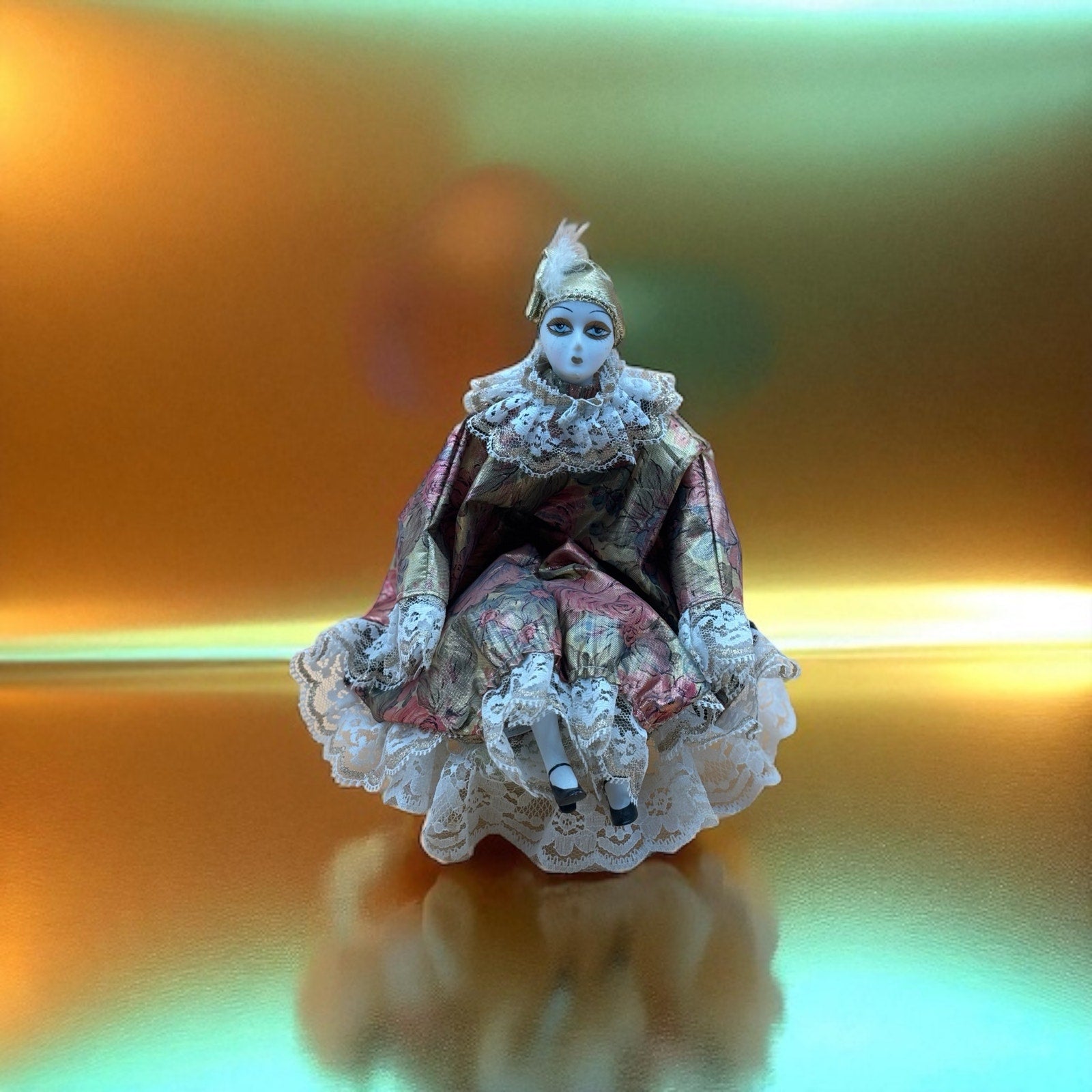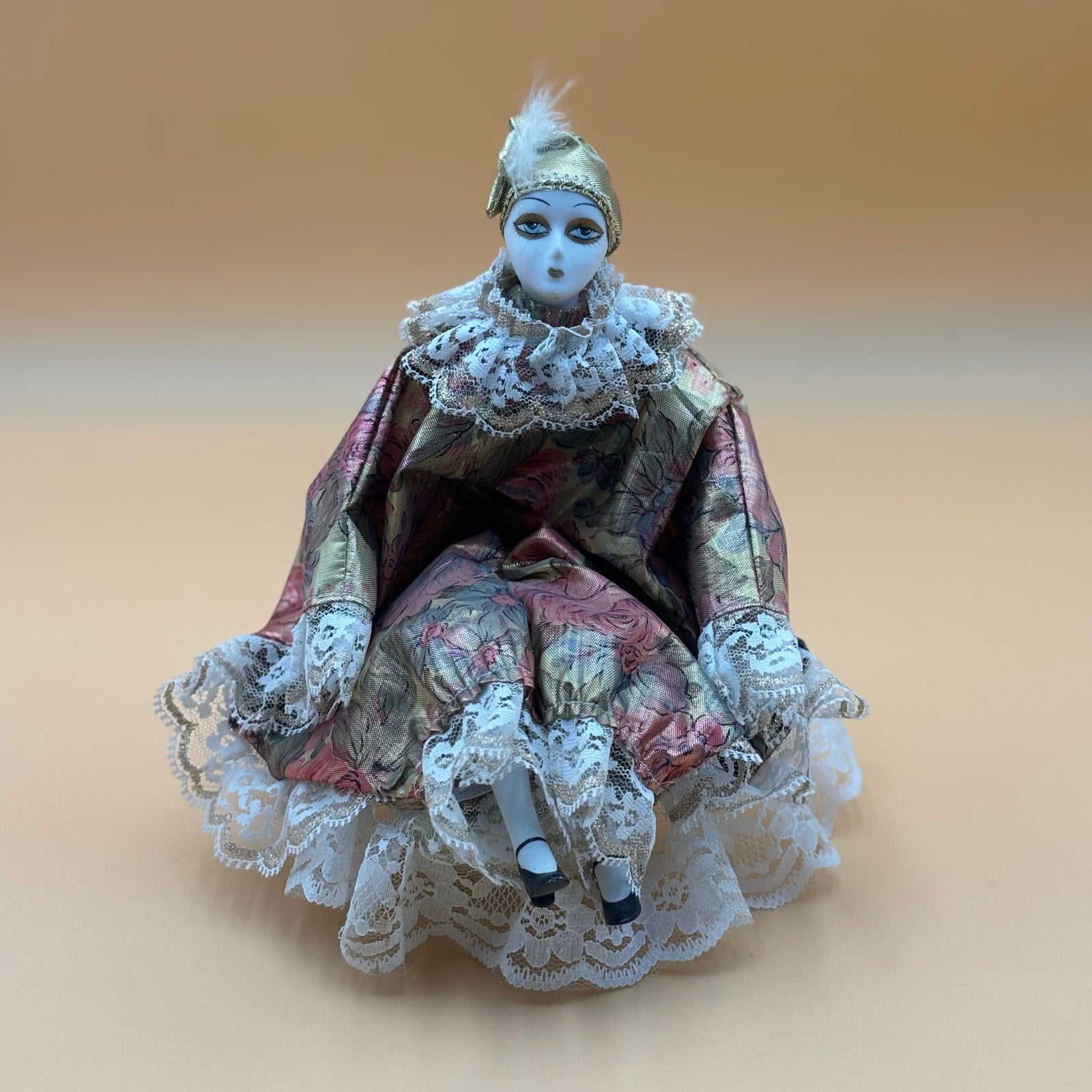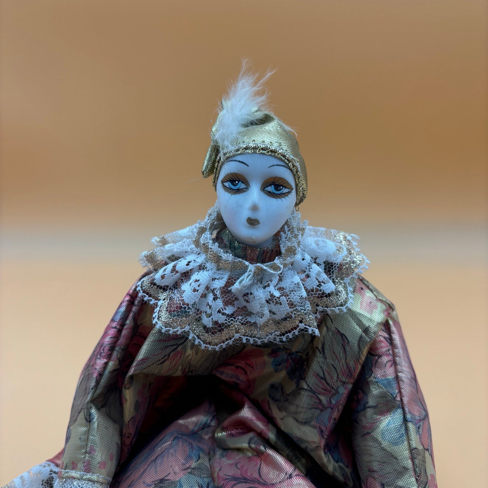 Porcelain Musical Clown Doll β Gold & Floral Dres