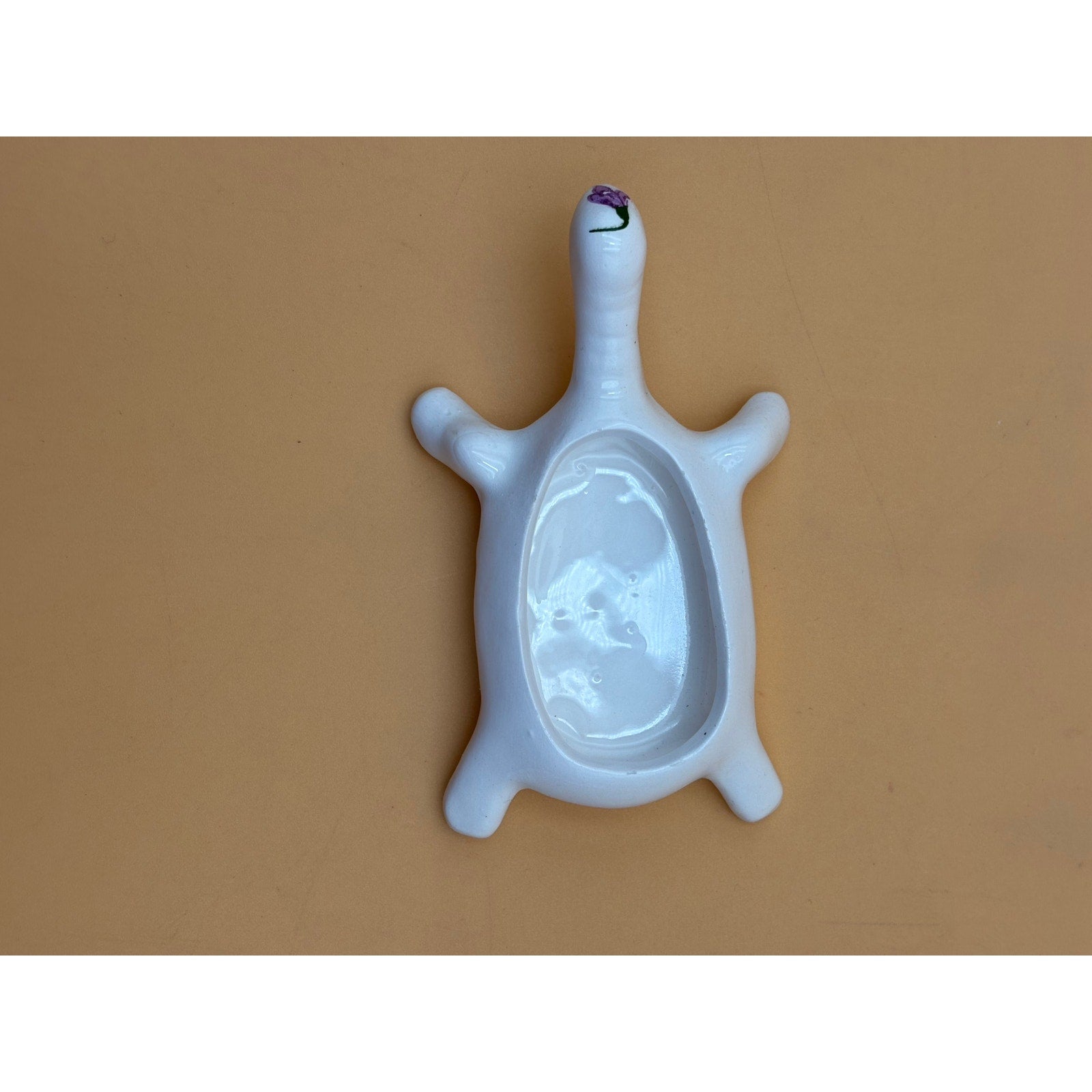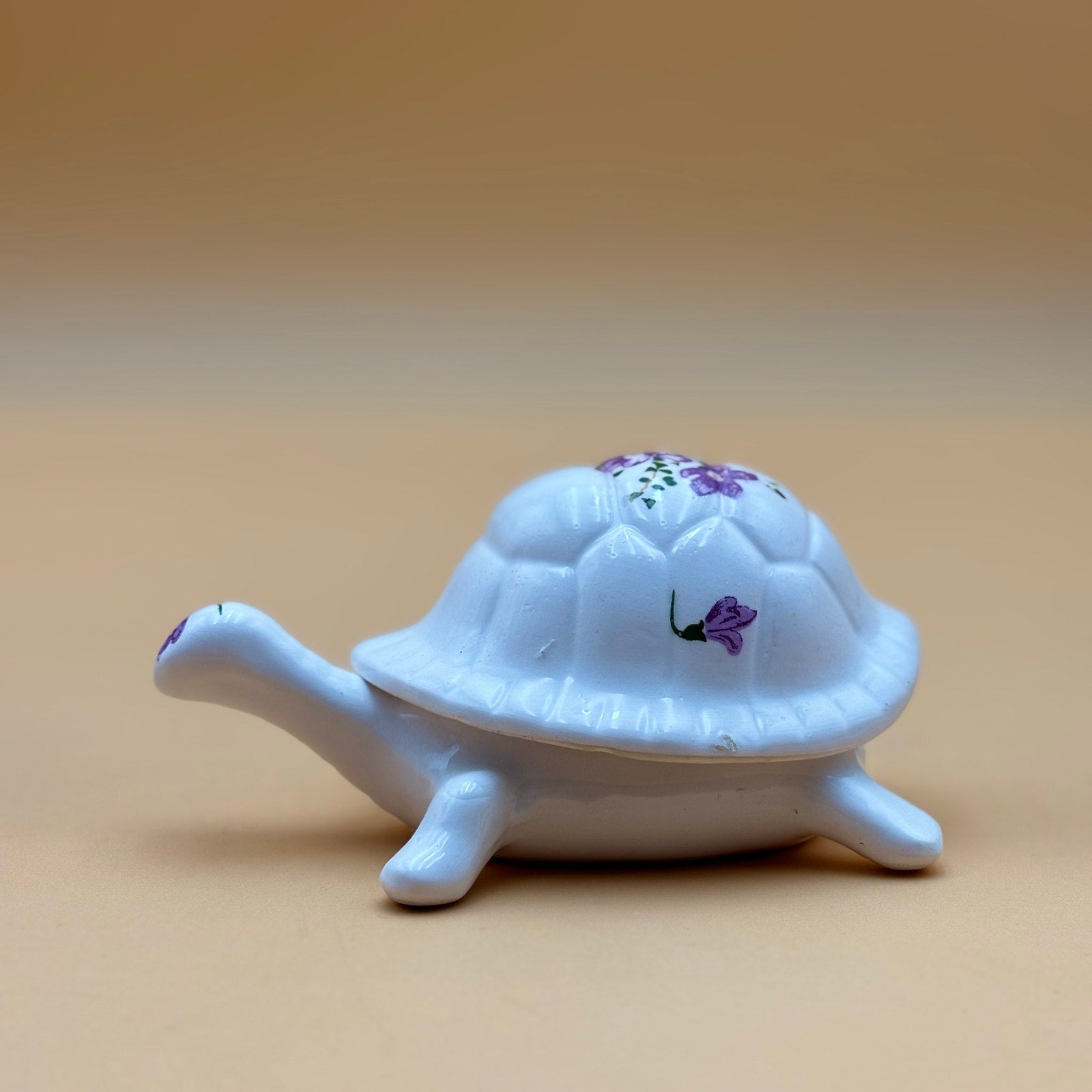 Porcelain Turtle Trinket Box with Purple Floral Design – Made in Taiwan