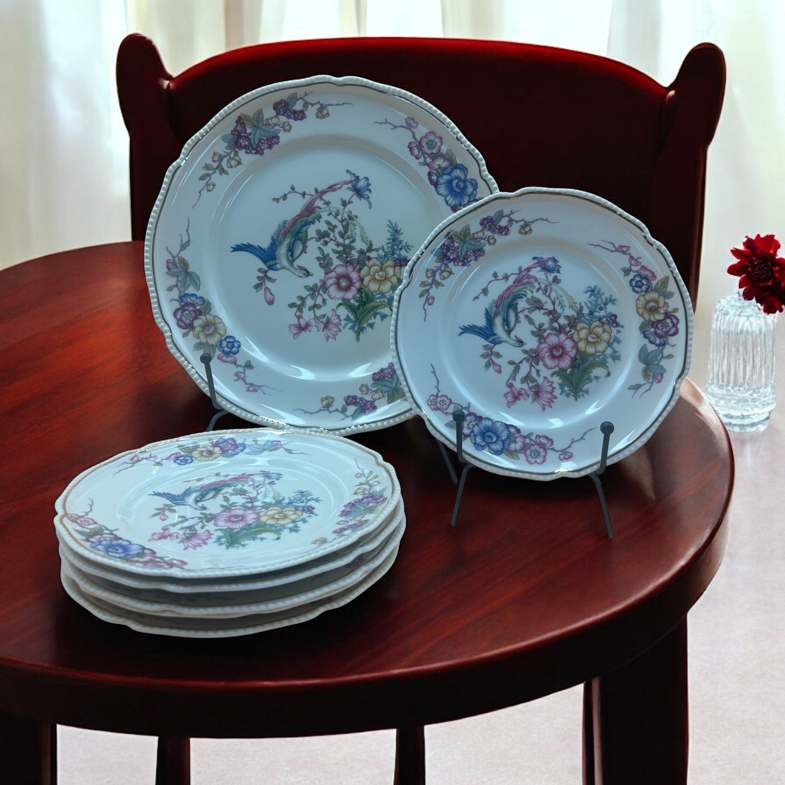 Rosenthal Continental Phoenix Plates – 1 Dinner (9¼″) + 6 Salad (6¼″) – Bird & Floral with Beaded Rim