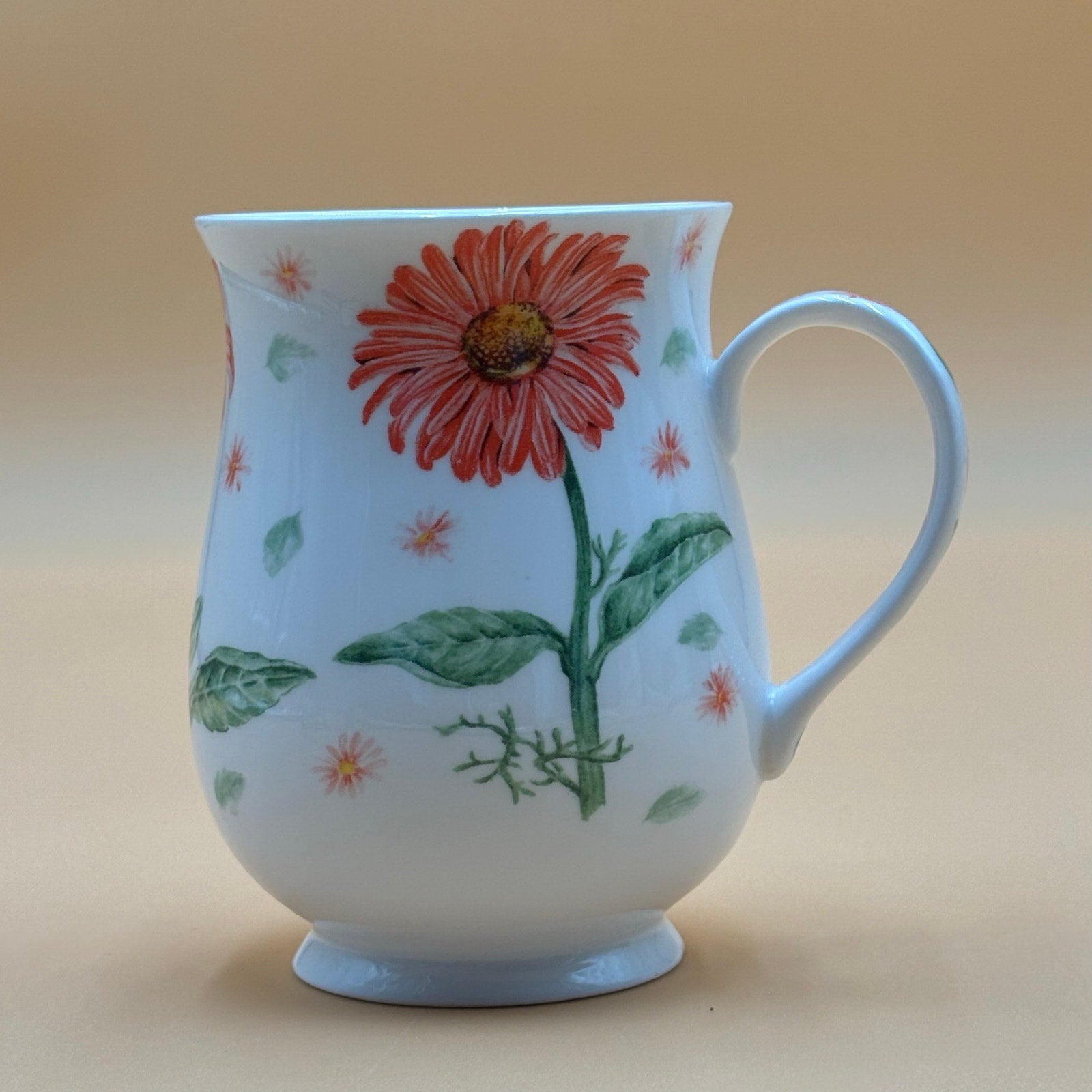 📦 Set of 2 Fine Bone China Floral Mugs - Orange Gerbera Daisy