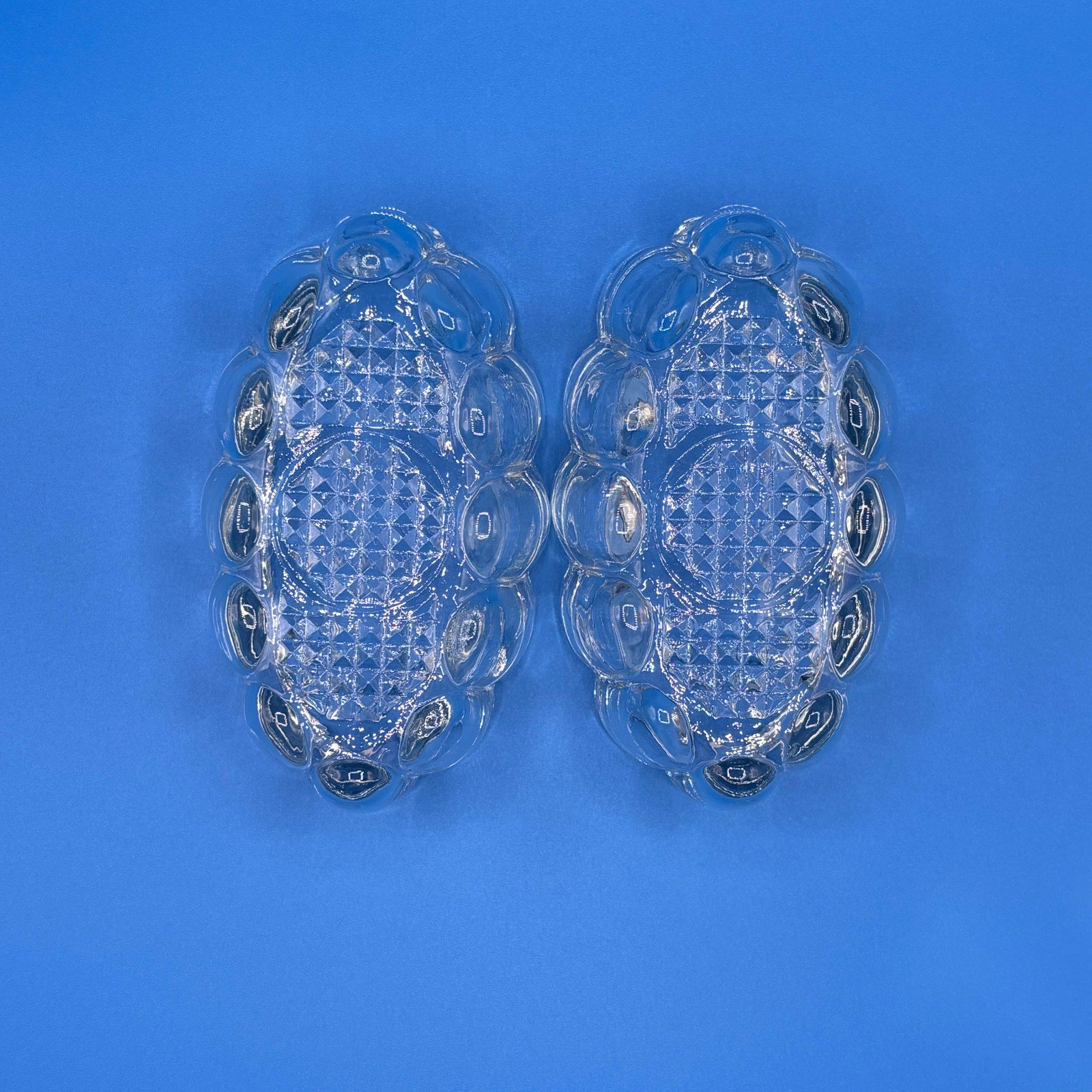 Set of two oval crystal utensil rests by Princess House. Elegant clear crystal design perfect for resting spoons and forks while cooking or serving. Practical and decorative addition to your table or counter.