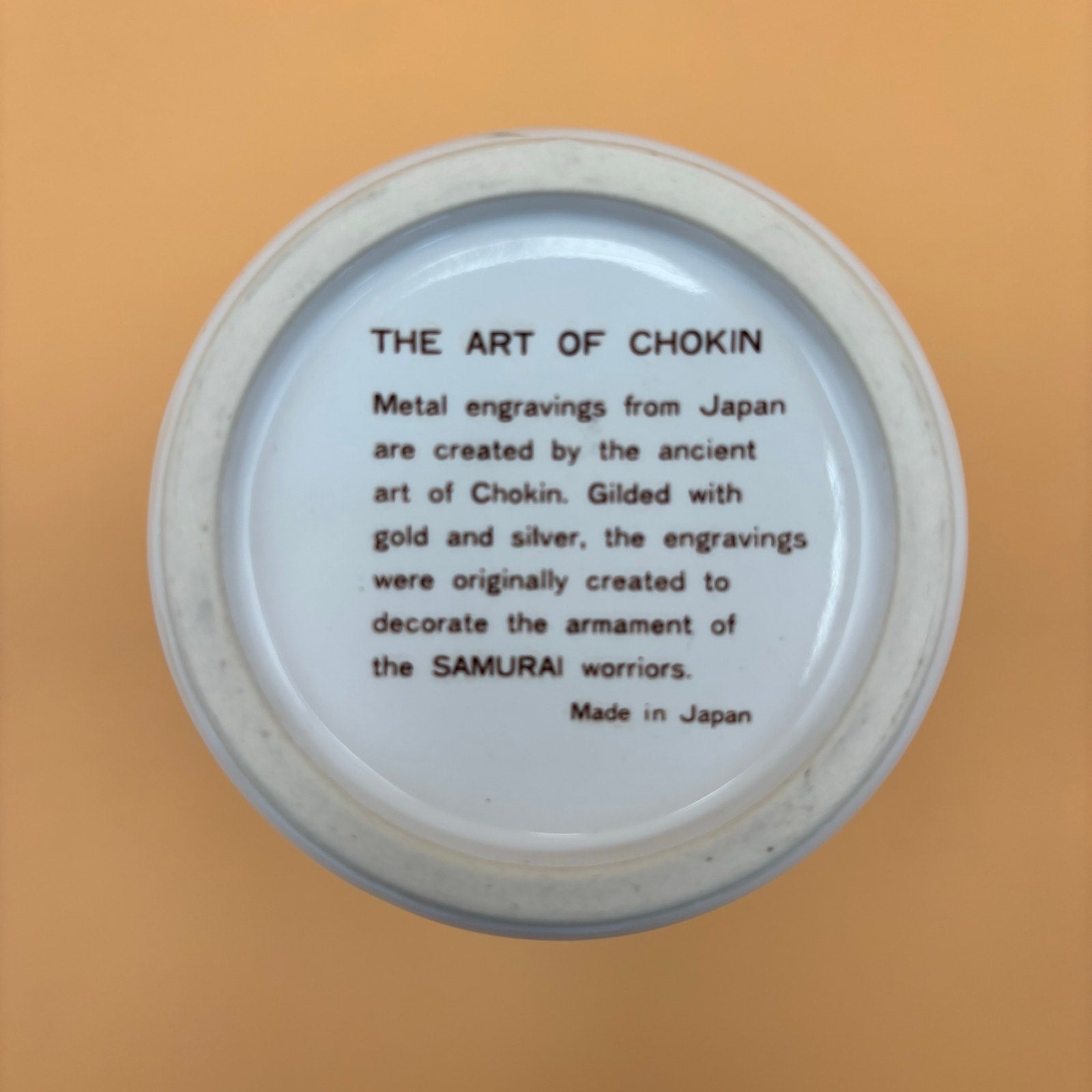 “The Art of Chokin. Metal engravings from Japan are created by the ancient art of Chokin. Gilded with gold and silver, the engravings were originally created to decorate the armament of the SAMURAI warriors.”