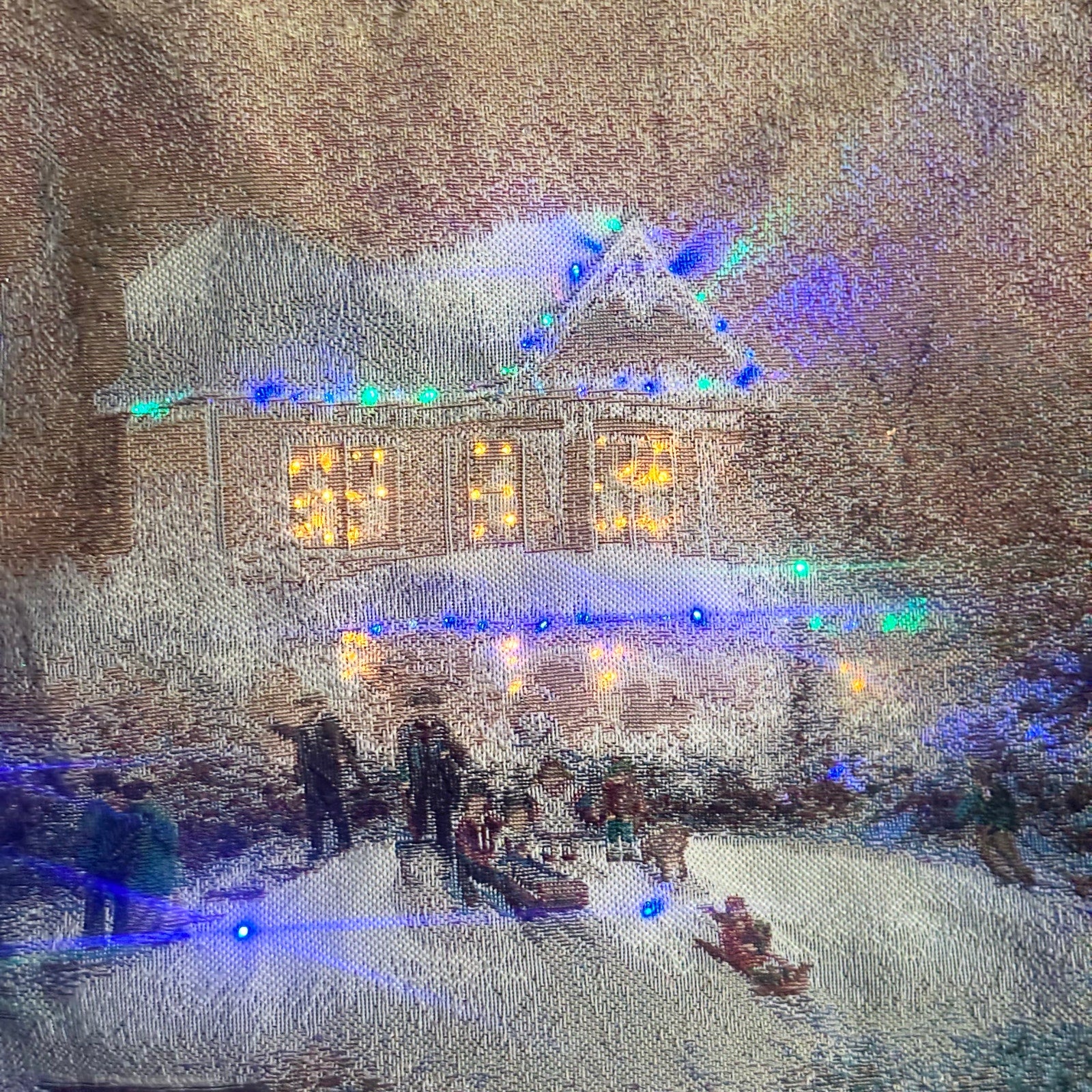 Thomas Kinkade Fiber Optic Wall Tapestry – Victorian Christmas Scene