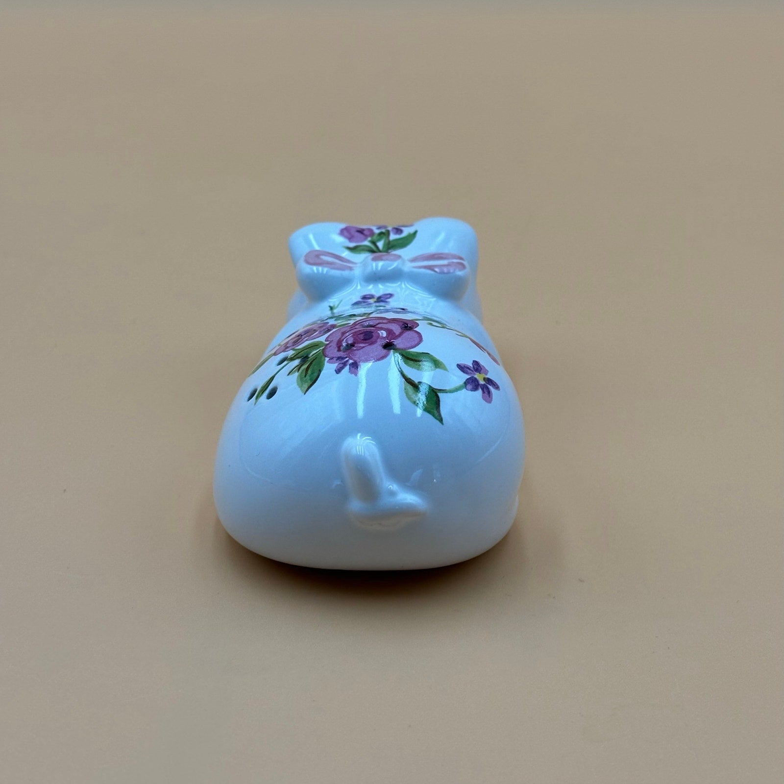 Vintage 1978 Avon Ceramic Pig Sachet β Floral Sleeping Pig with Bow, Made in Brazil