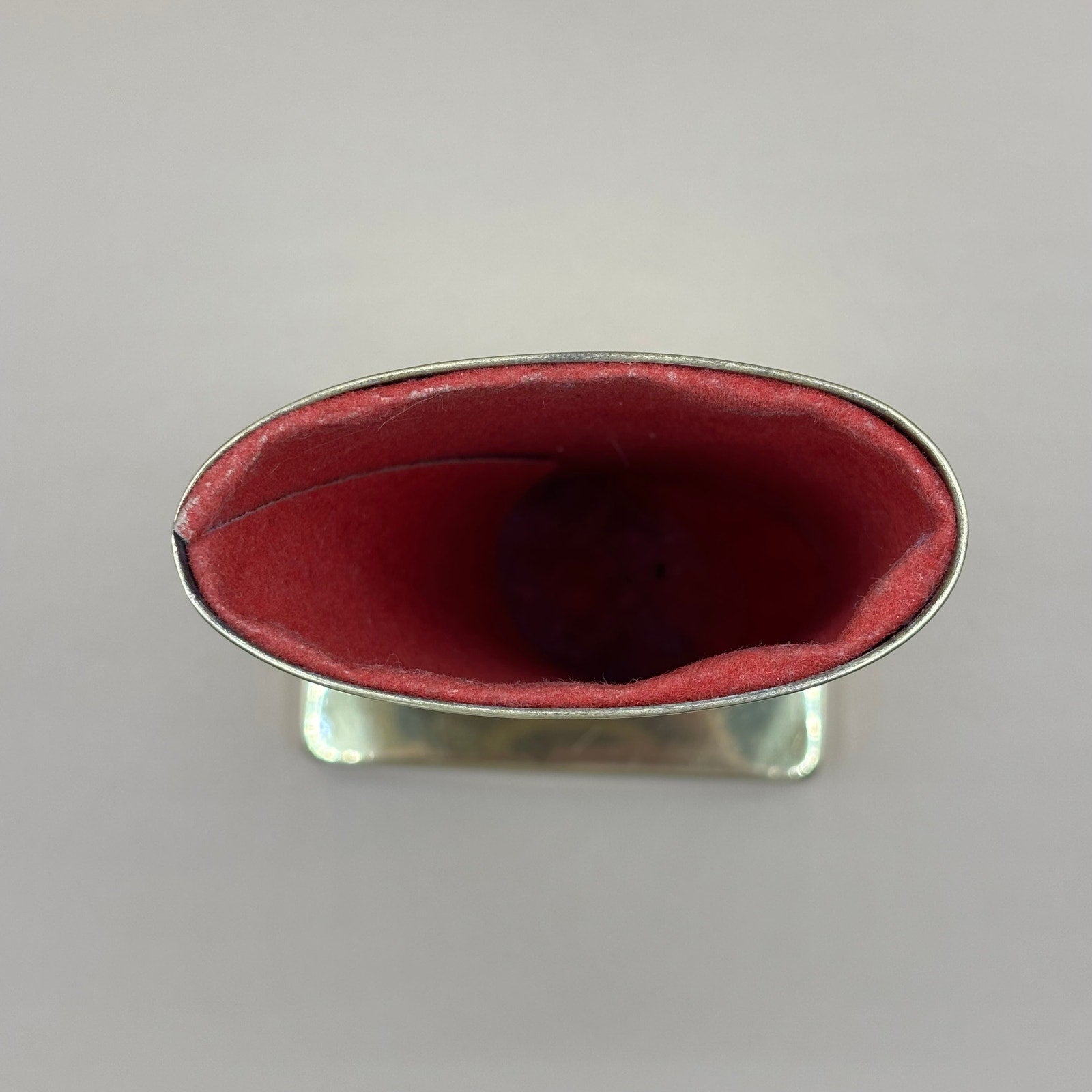 Stylish brass desk accessory with red felt interior. Perfect for pens, eyeglasses, or small office items. Made in Taiwan. Unique vintage piece for desk organization with elegant gold-tone finish.