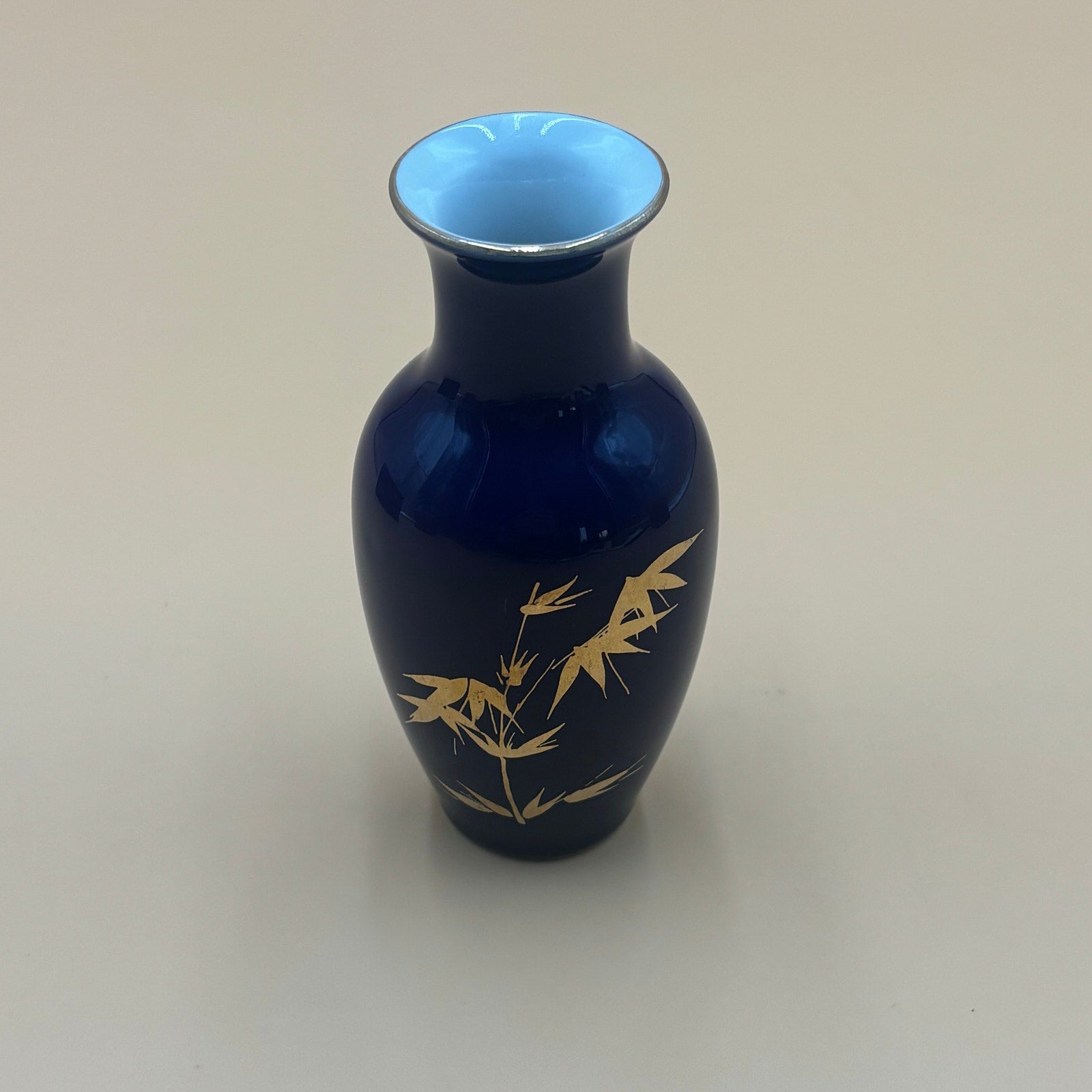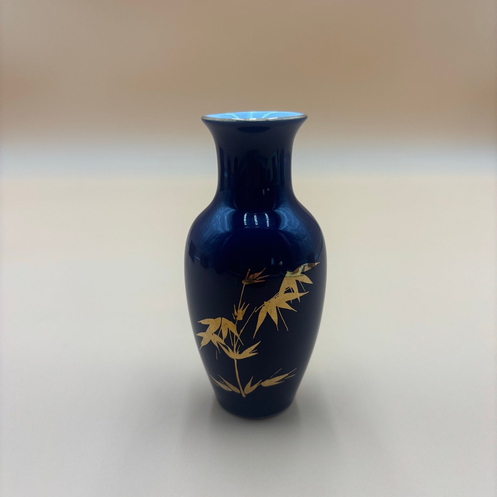 Vintage Cobalt Blue Vase with Gold Bamboo Design β 4.5β Tall