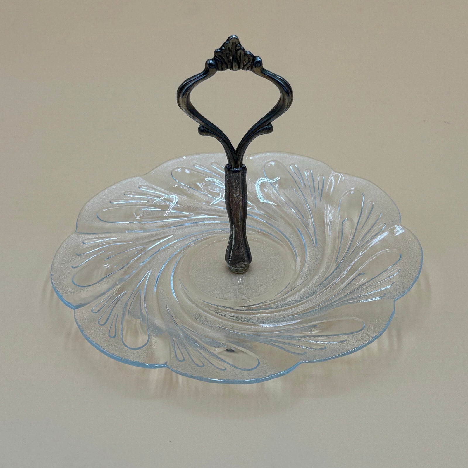 GlassDish, SilverHandle, ServingTray, VintageFind, HomeDecor, Entertaining, TableDecor, GiftIdea, Collectible, TeaParty null
