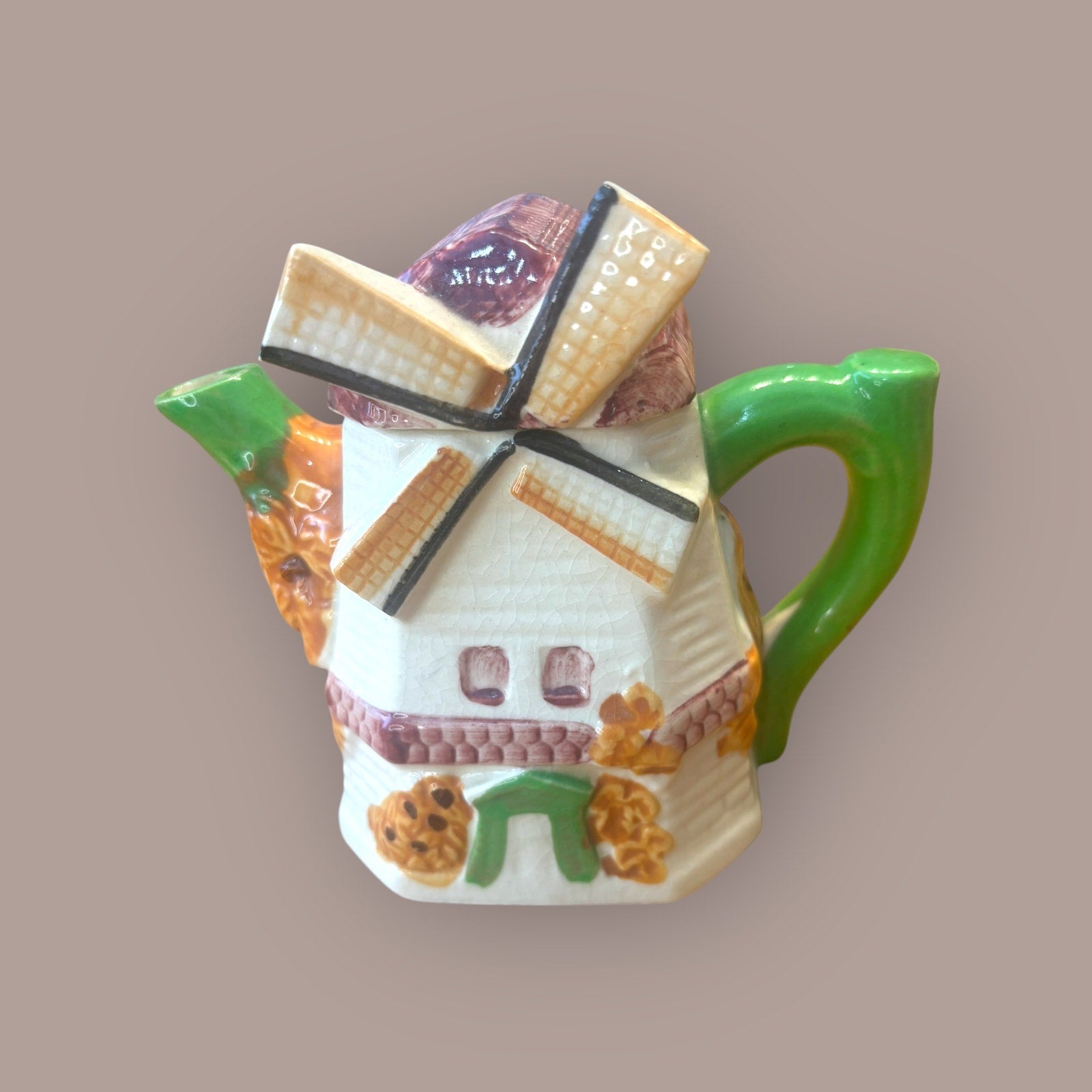 Vintage Japanese Windmill Teapot - Hand-Painted Cottage Design, Mid-Century