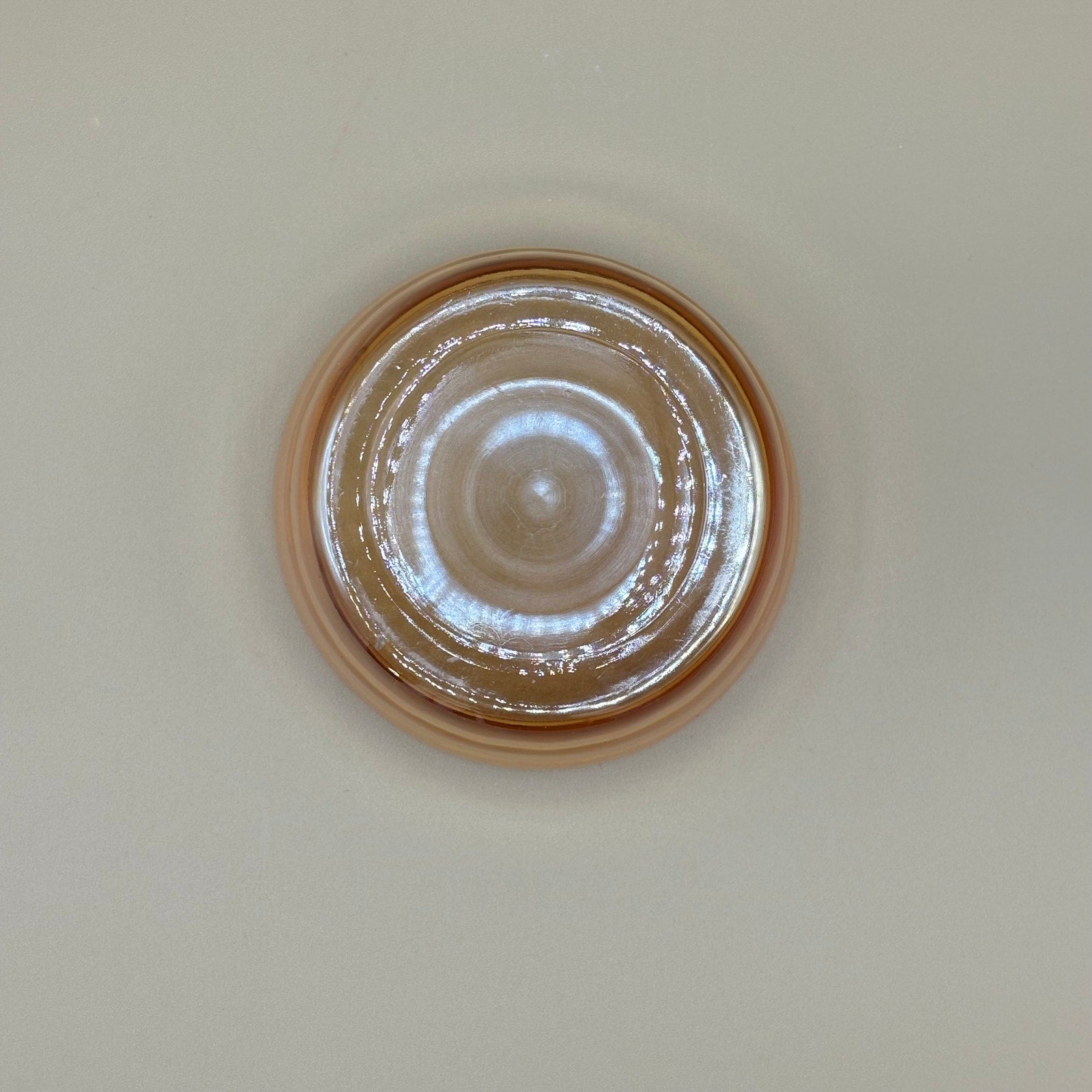 Classic Jeannette Glass Company trinket box featuring a Scottish Terrier design. Beautiful marigold carnival glass with lid. Perfect for storing small treasures or as a decorative powder jar. Charming vintage piece for dog lovers or carnival glass collectors.