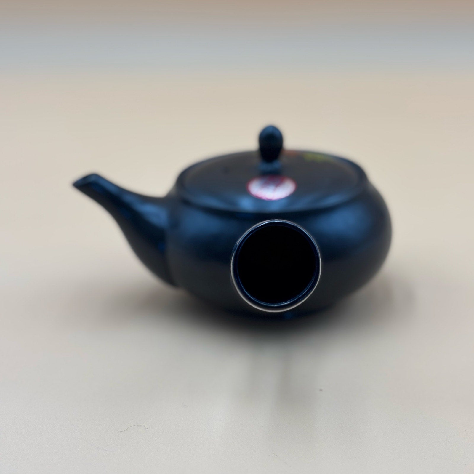Vintage Komaru Kiln Tokoname Kyusu Teapot — Black Ceramic with Maple Leaf Design