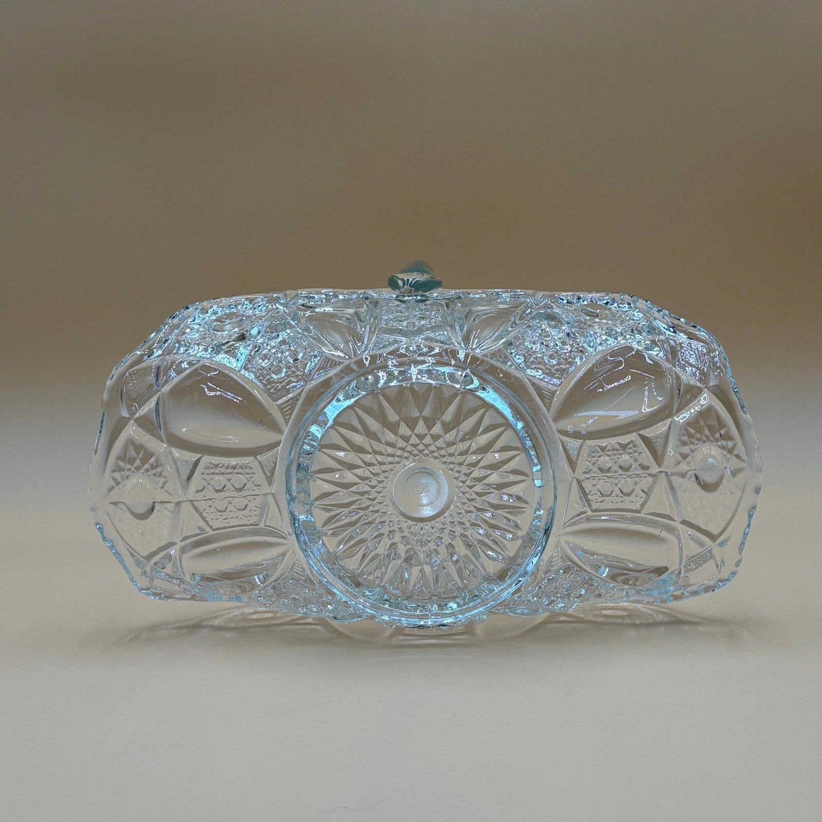 📦 Vintage LE Smith Clear Bridal Basket Hobstar & Cane Pattern