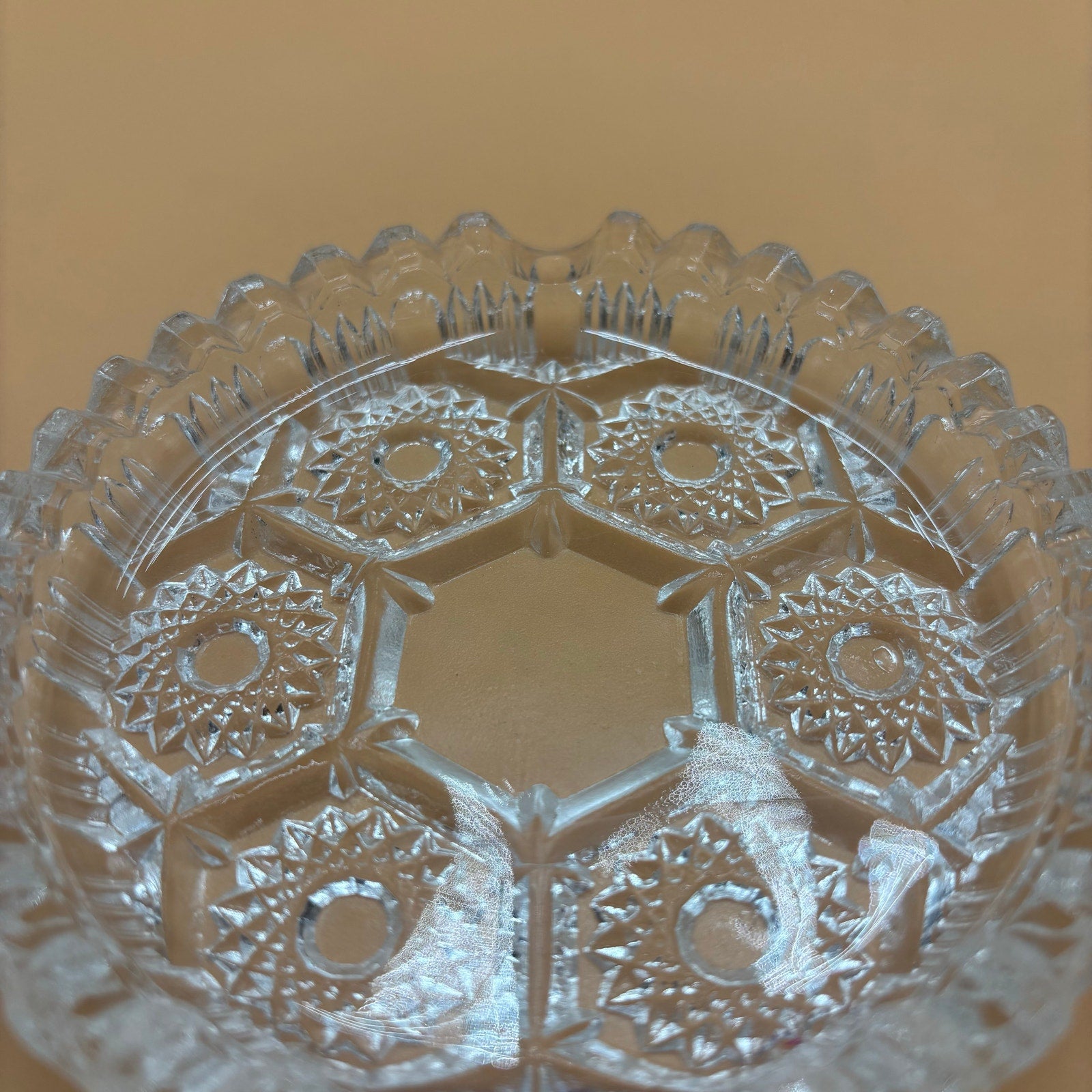📦 Vintage Pressed Glass Trinket Dish - Set of 4 - Starburst Hexagon Pattern