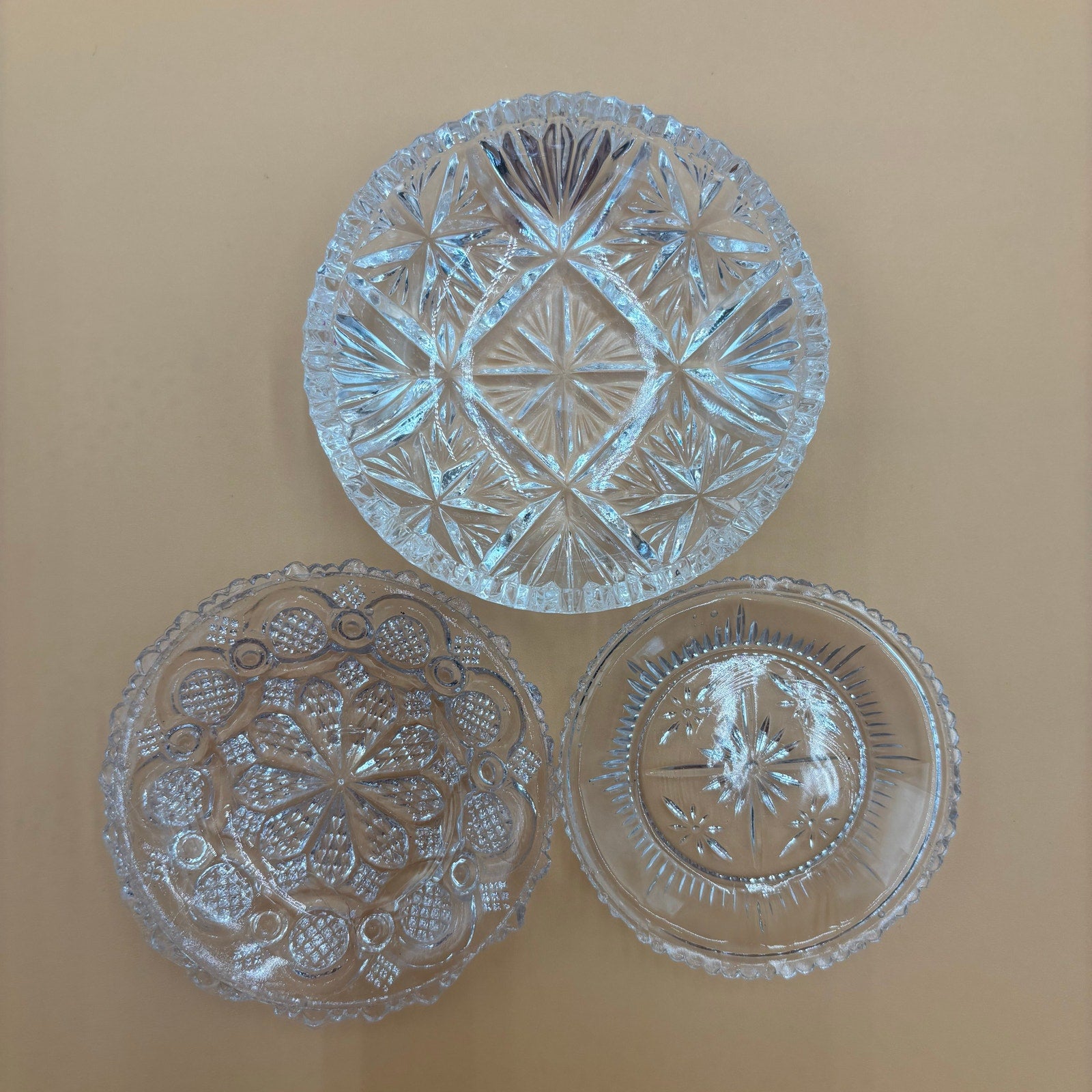 📦 Vintage Pressed Glass Trinket Dishes - Set of 3 - Mixed Patterns