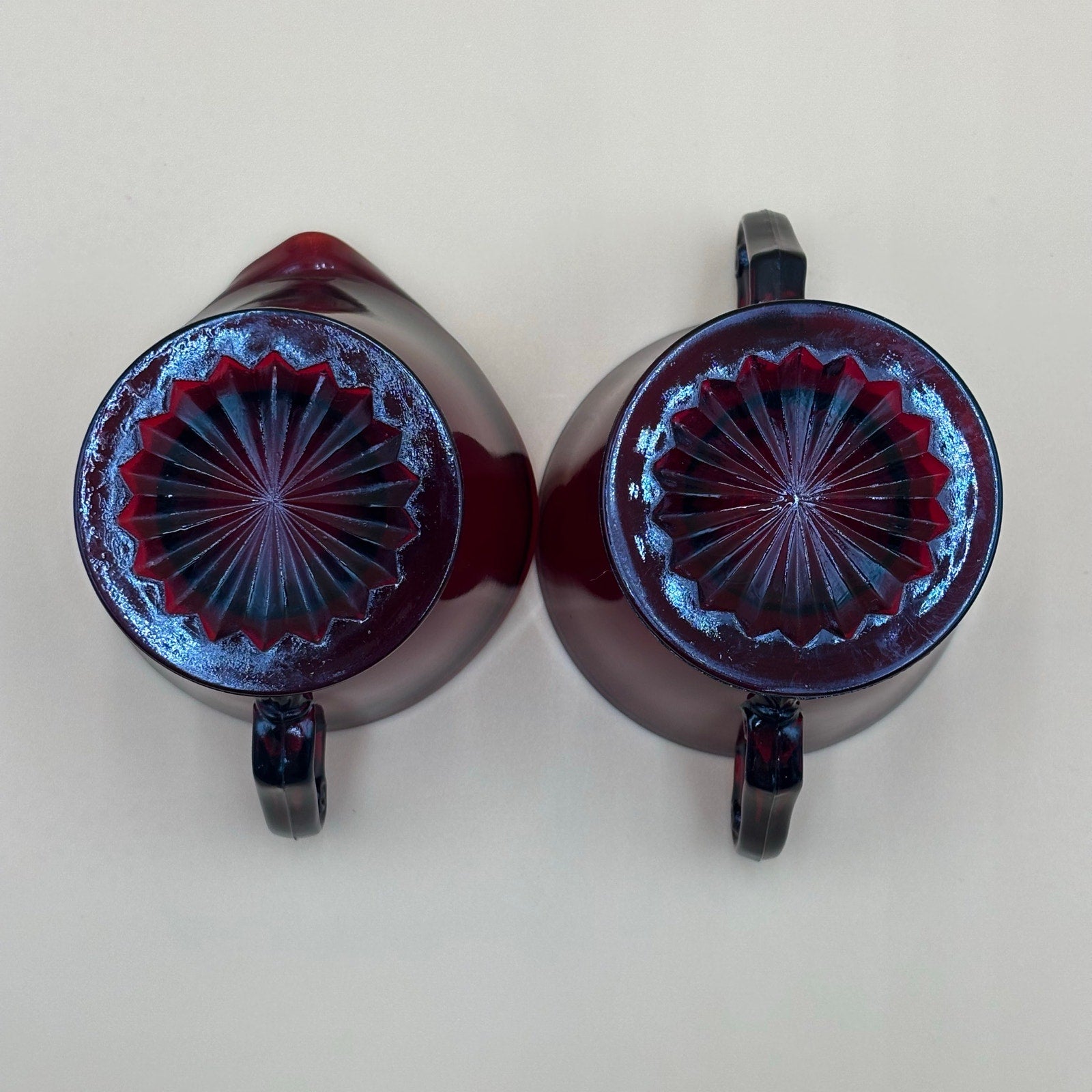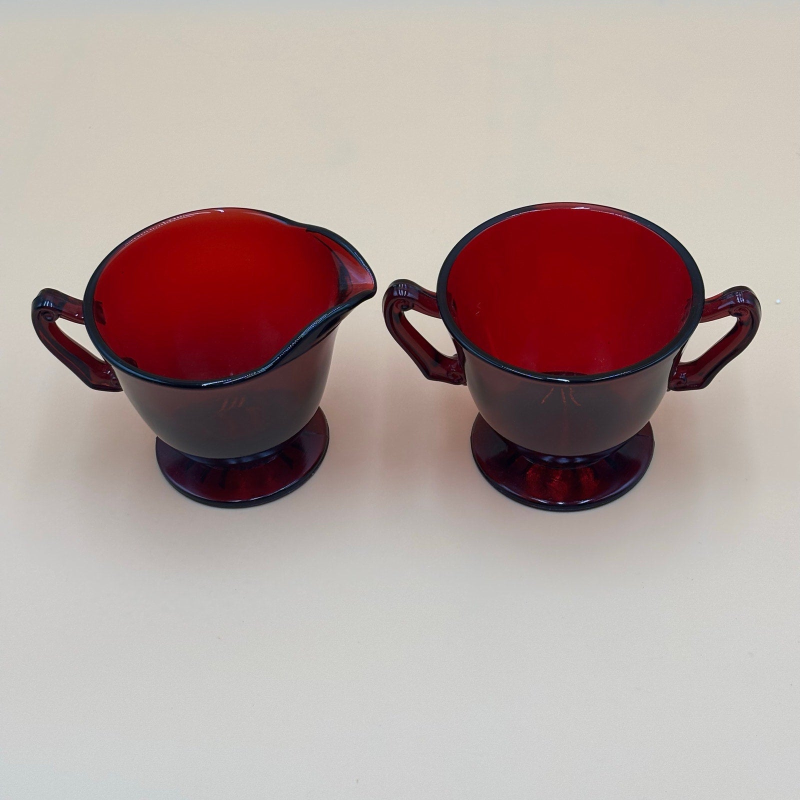 Vintage Ruby Red Glass Creamer & Sugar Set - Starburst Bottom