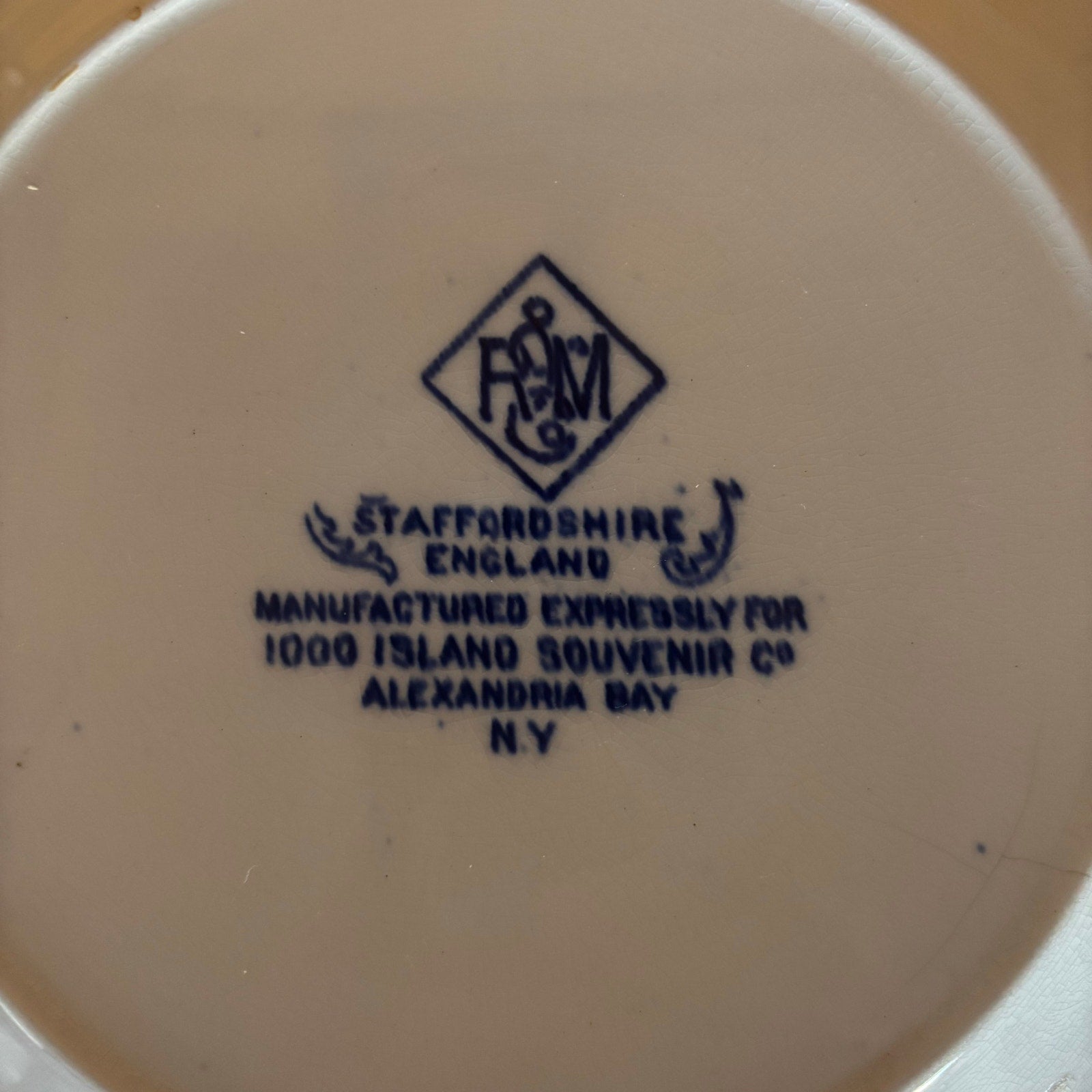 Vintage Staffordshire England Blue & White Plate - Thousand Islands NY