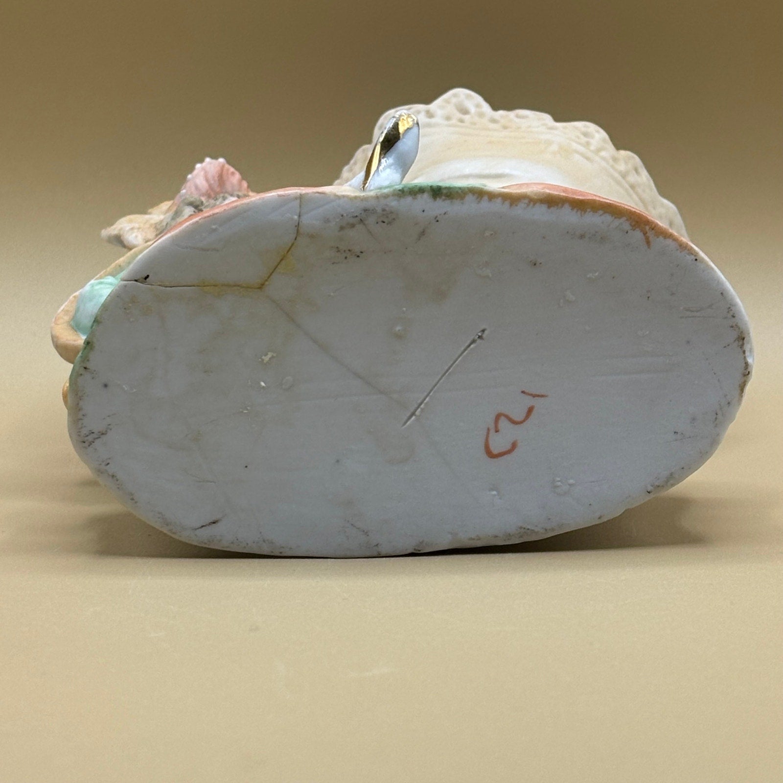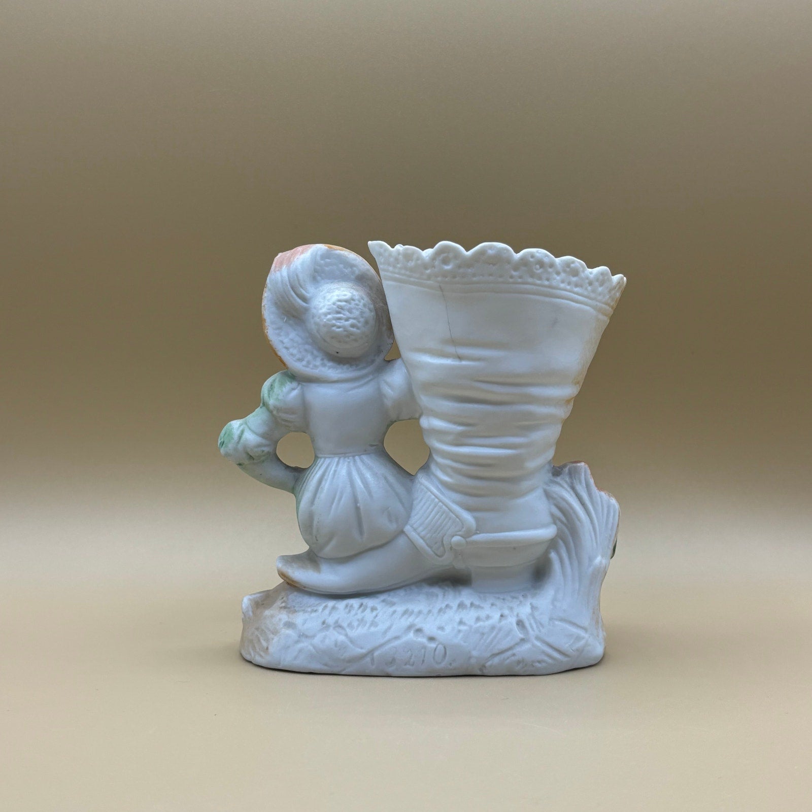 Vintage Victorian Boy & Girl Boot Planters - Porcelain Figurine Pair #3270