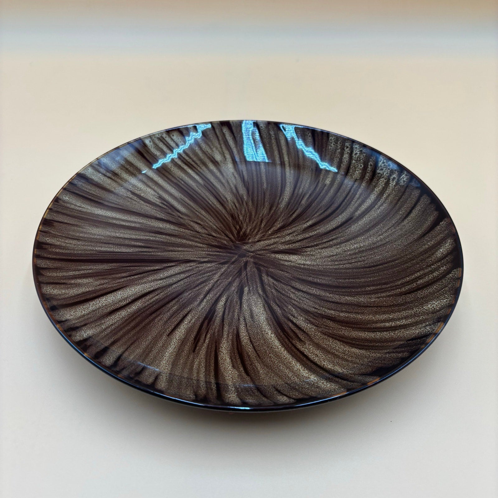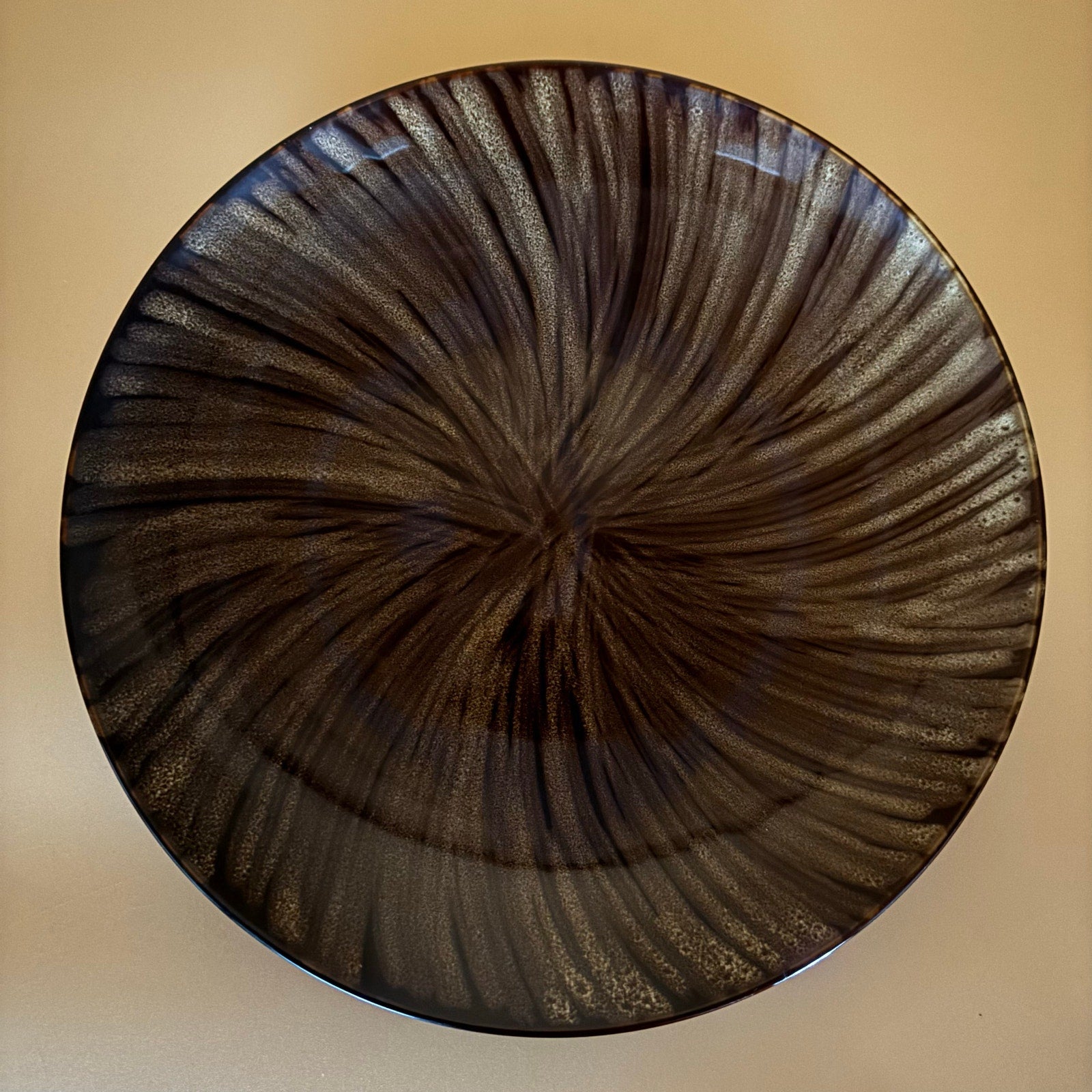 Vtg. Oneida Horizon Swirl Dinner Plate - Brown Stoneware "11.5