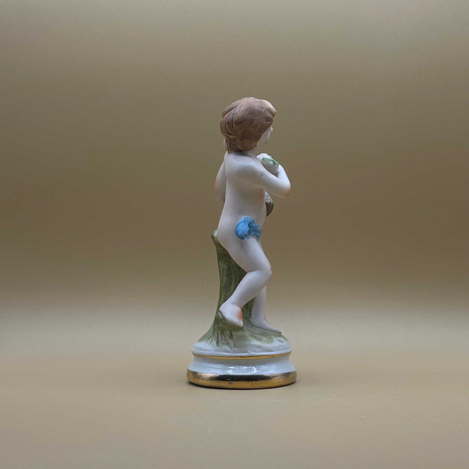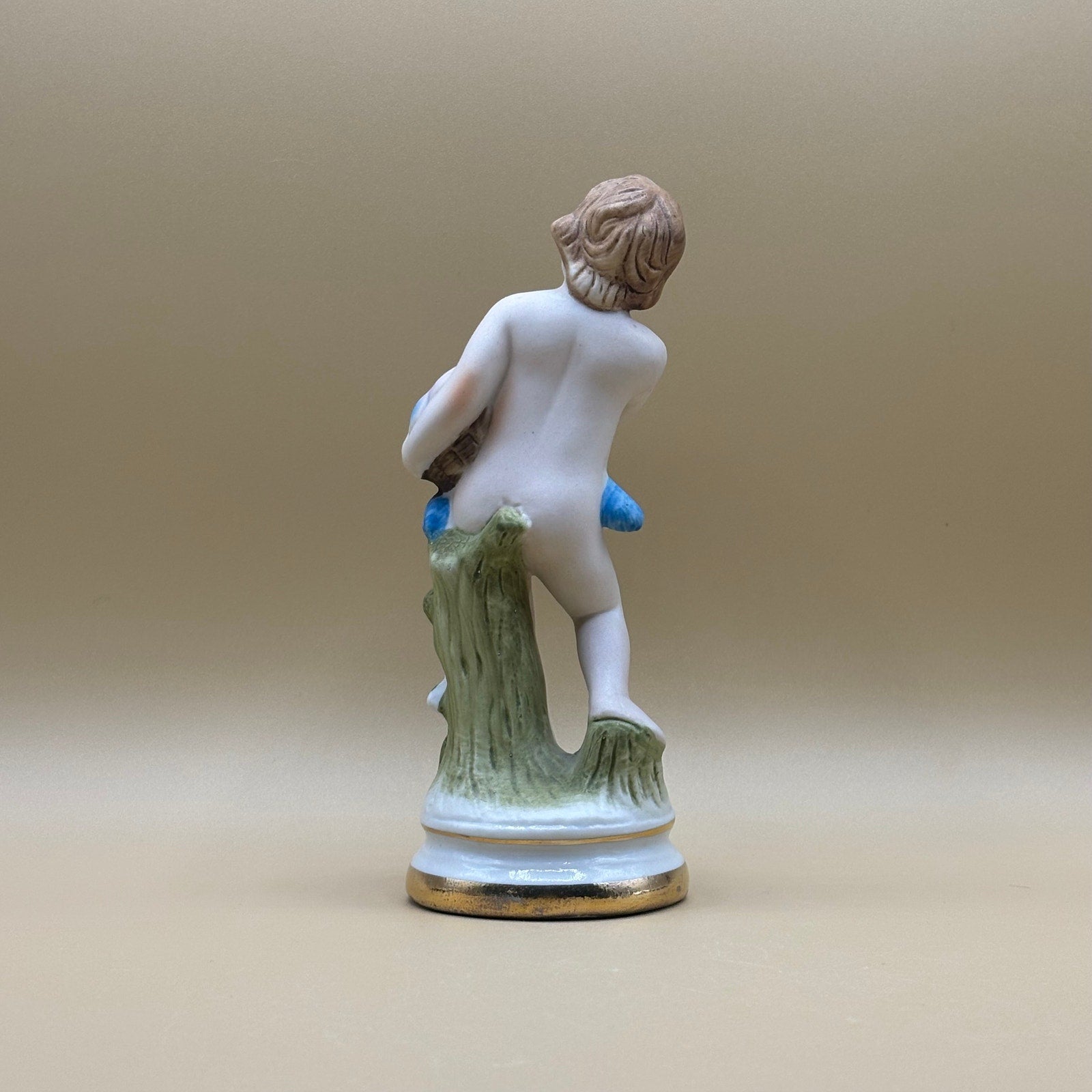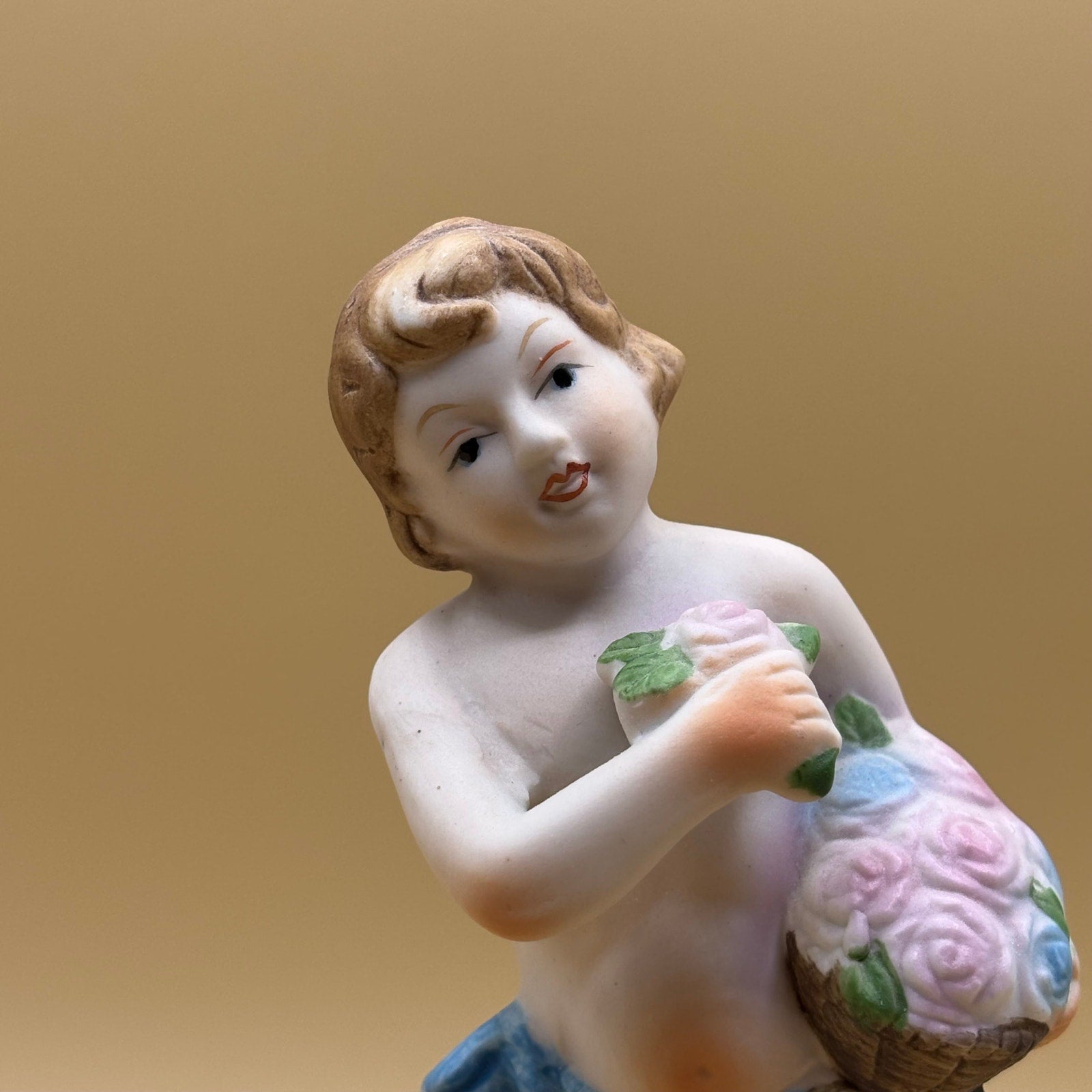 📦 VTG Porcelain Standing Cherub with Rose Basket