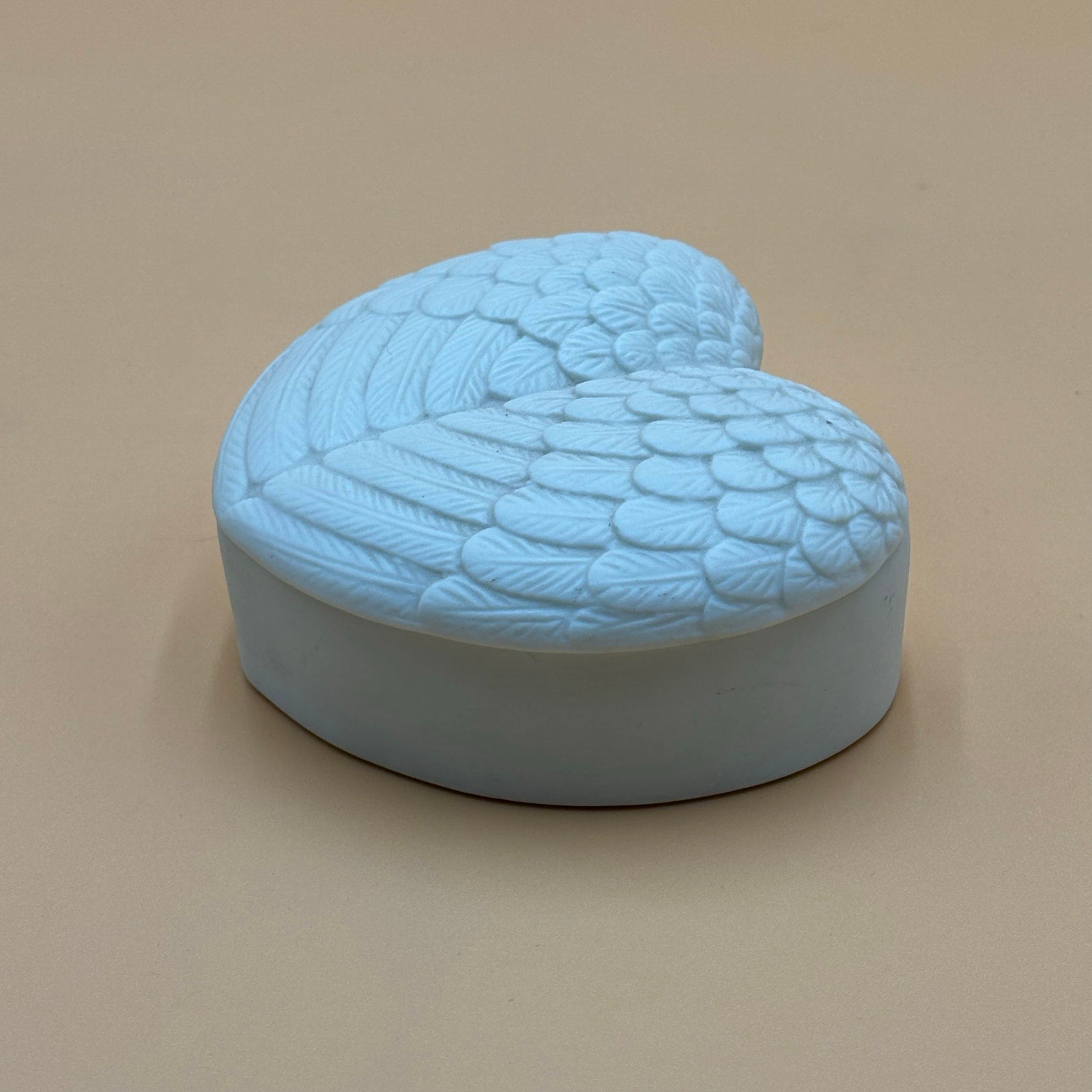 White Angel Wing Heart-Shaped Feather Trinket Box β Ceramic